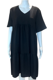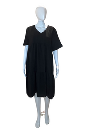 This Black Short Sleeve Midi Length Tiered Ruffle Dress is the perfect addition to any casual wardrobe. With its light weight and relaxed fit, it's both comfortable and stylish. Plus, its tiered ruffle design adds a touch of boho flair. Perfect for any plus size individual looking for a versatile and fashionable dress.
