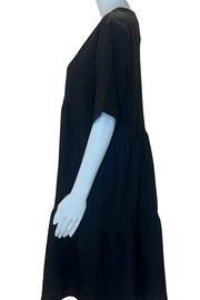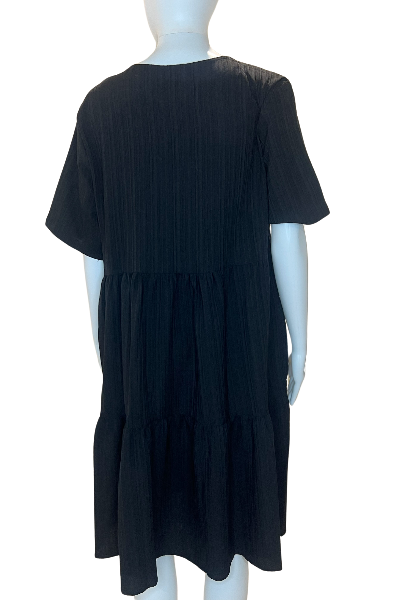 Black Short Sleeve Midi Length Tiered Ruffle Dress, Black Dress, Boho Dress