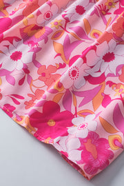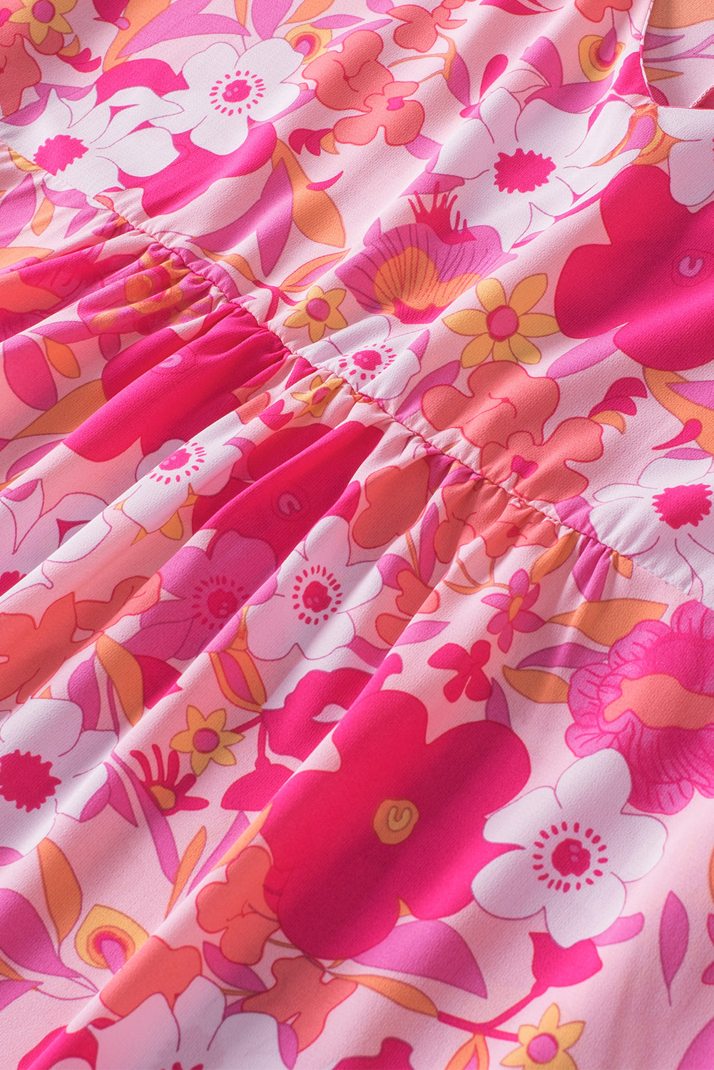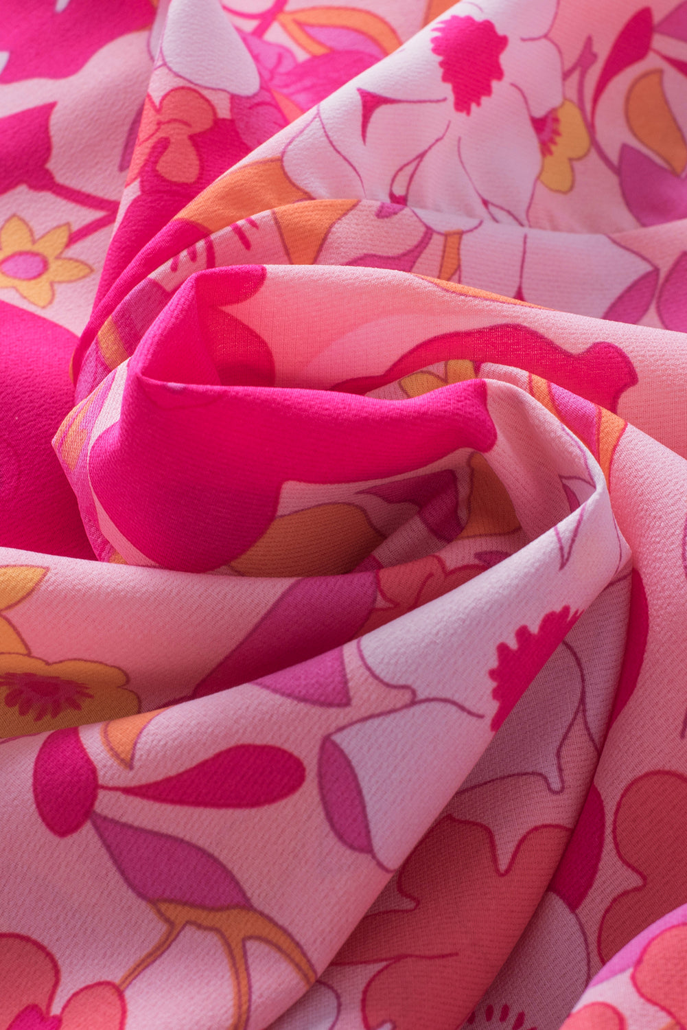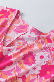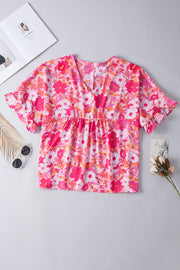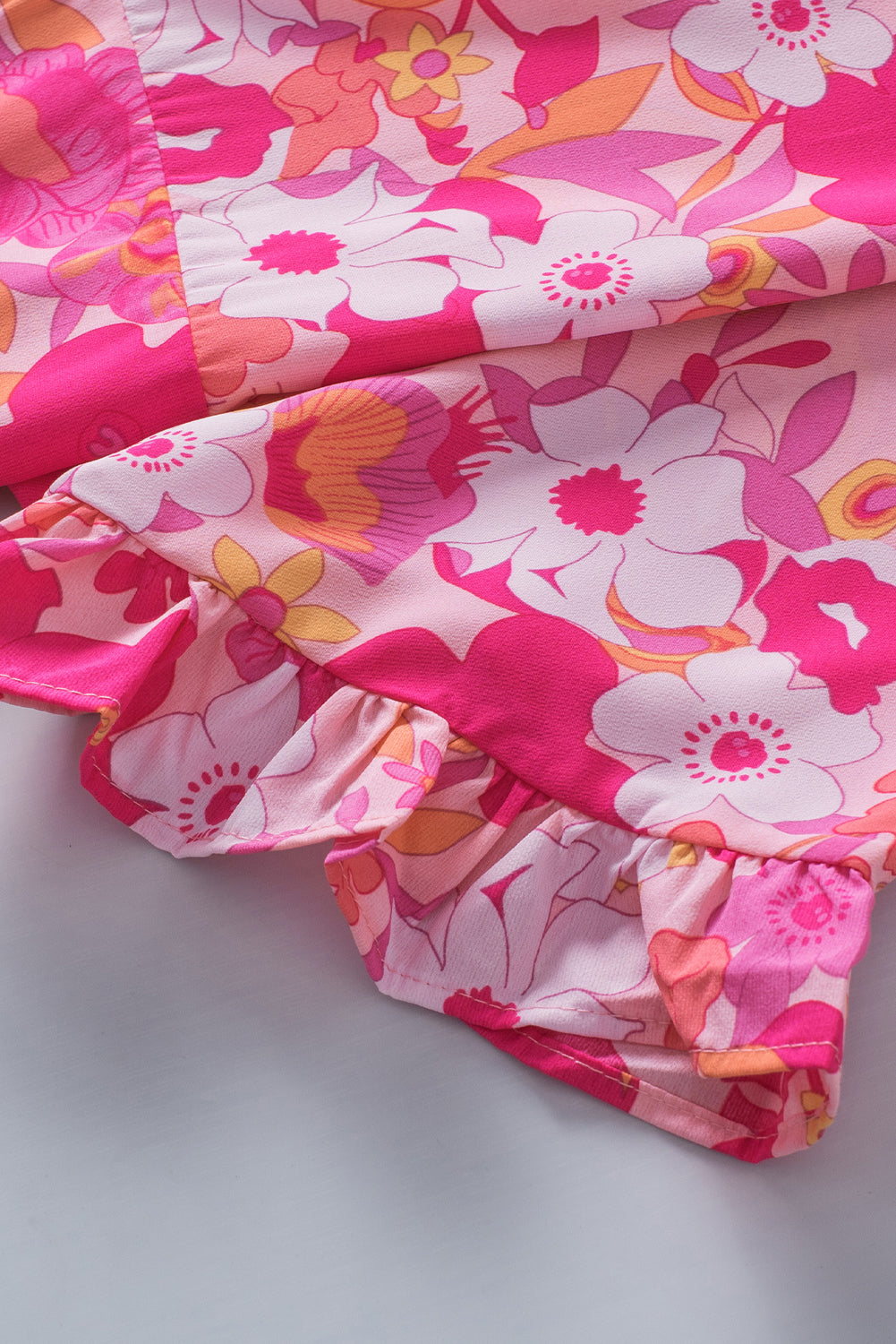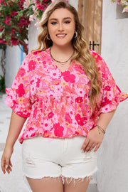 Detailed Pink Ruffle Floral Print Plus Size Top
