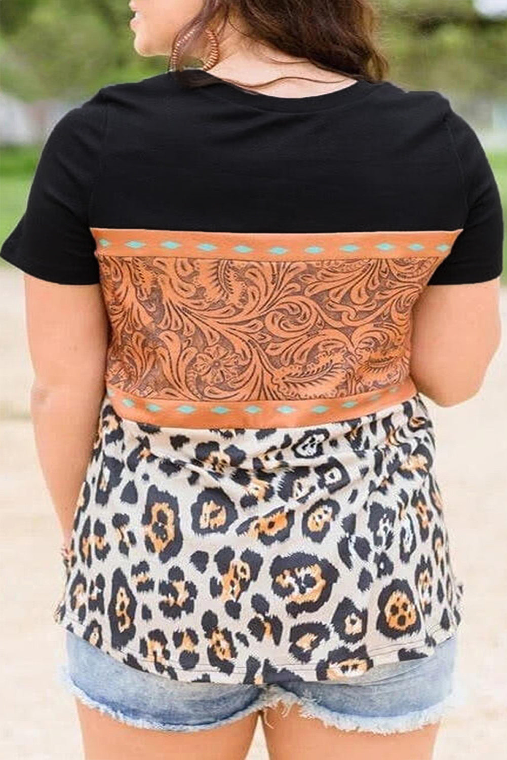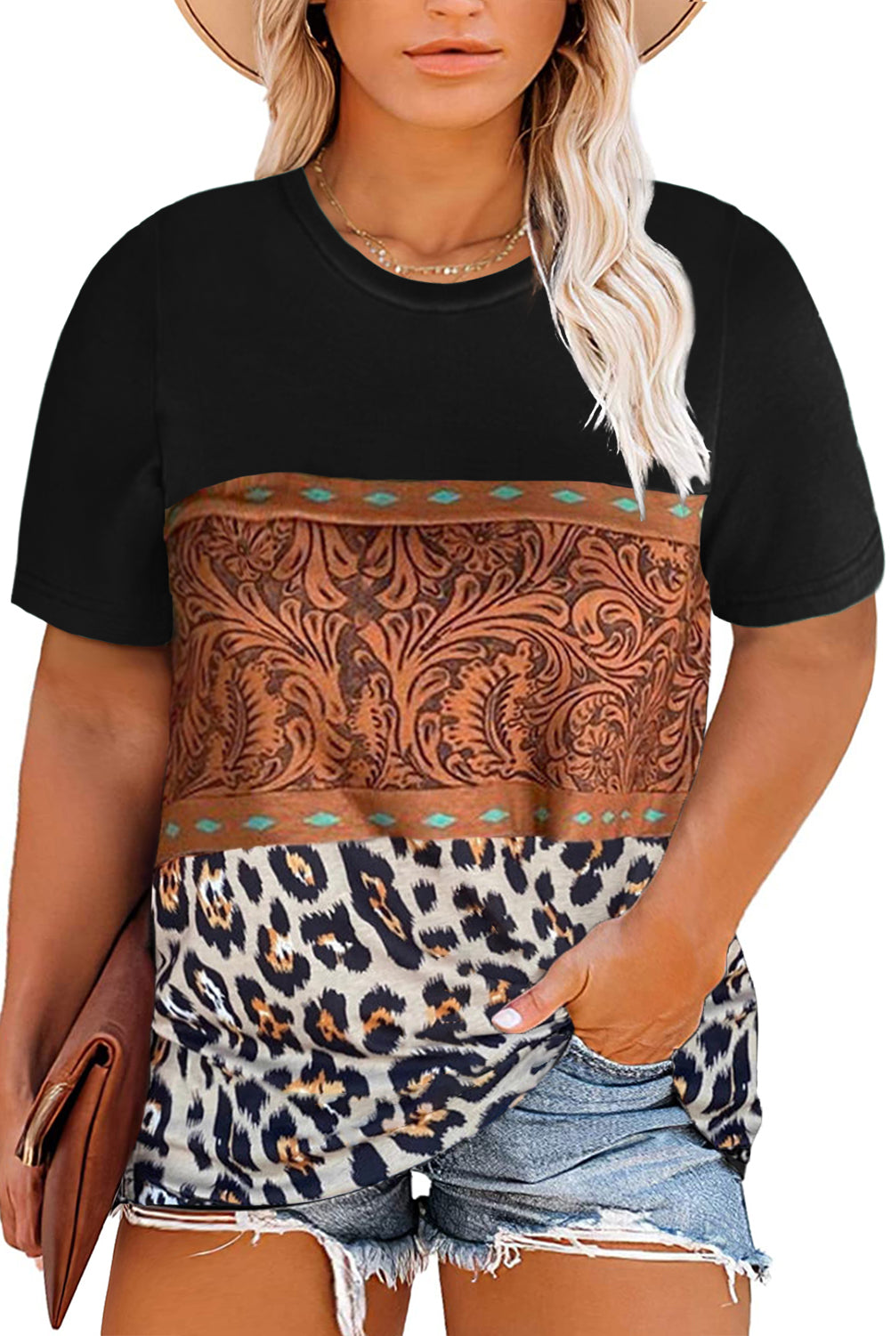 Short Sleeve Black, Leopard Print & Paisley Plus Size Top