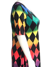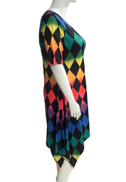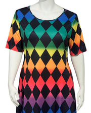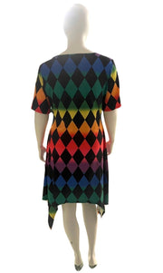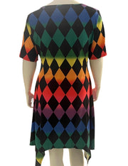 Plus Size Multi Colour Rhomboid Check Printed Dress with Round Neckline