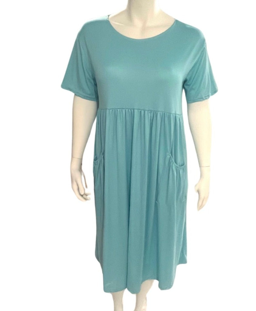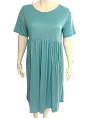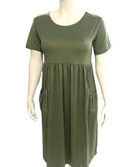 Plus Size Womens Babydoll Casual T-shirt Dress, Women's Plus Round Neck Midi Dress