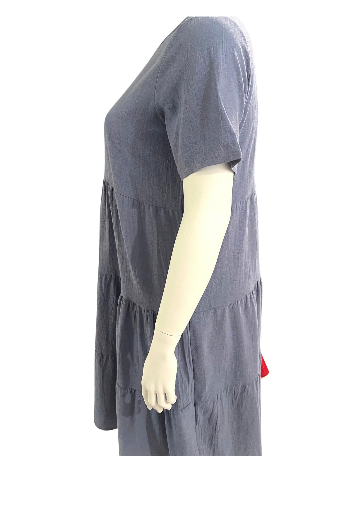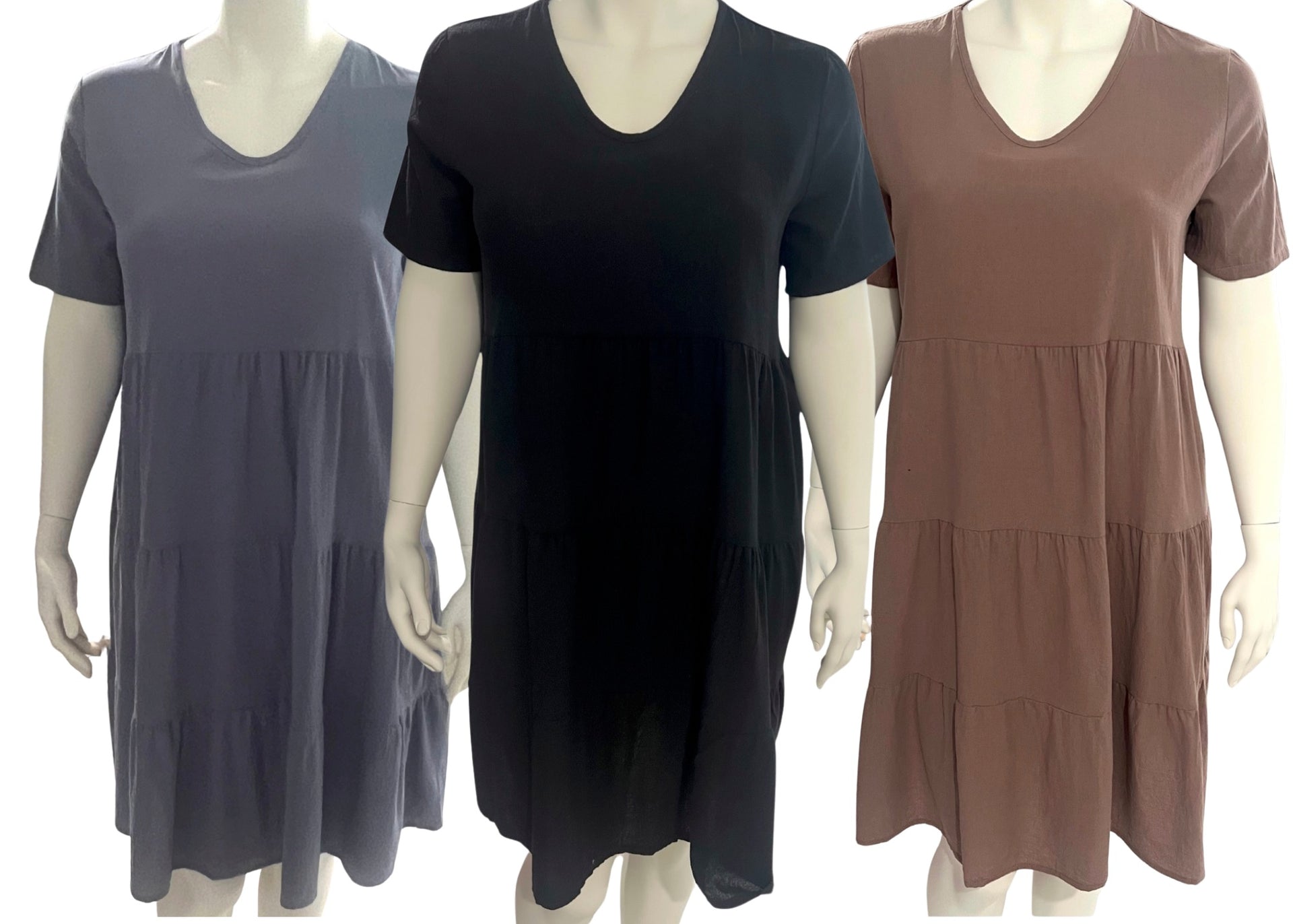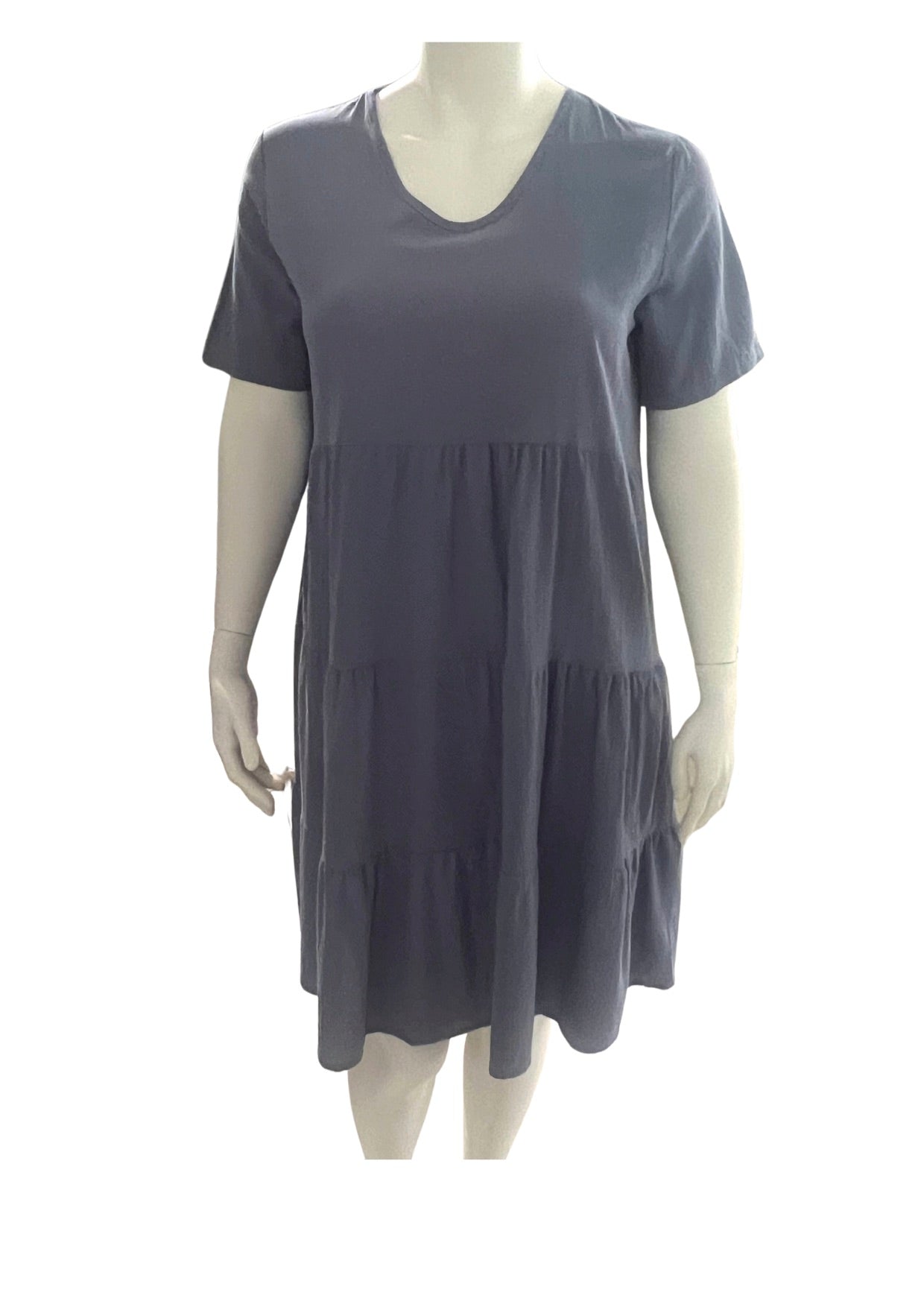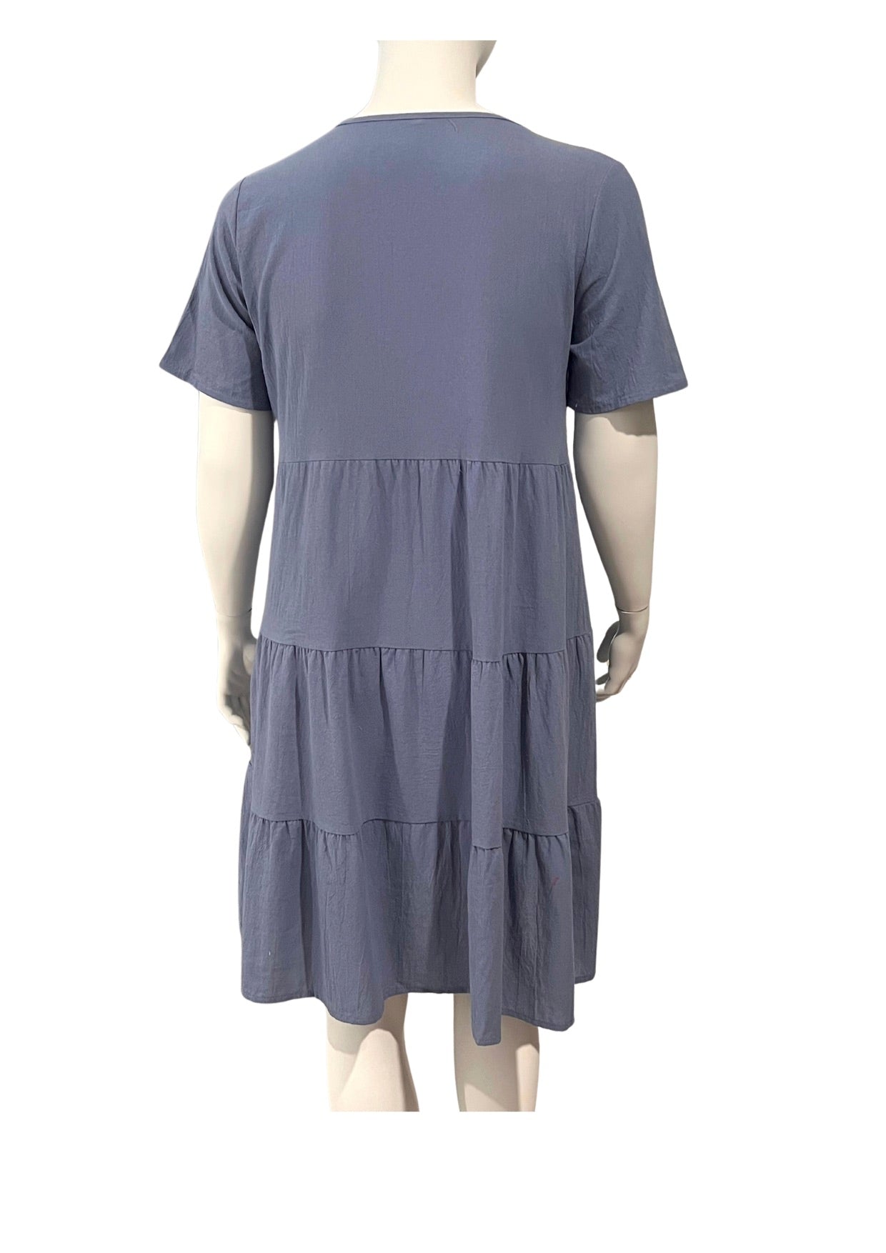Introducing our Tiered Plus Size Womens Dress, the perfect addition to your wardrobe. Made with a relaxed fit and featuring tiered layers, this knee-length dress is both comfortable and stylish. The v-neck adds a touch of femininity, making this dress a must-have for any casual occasion.