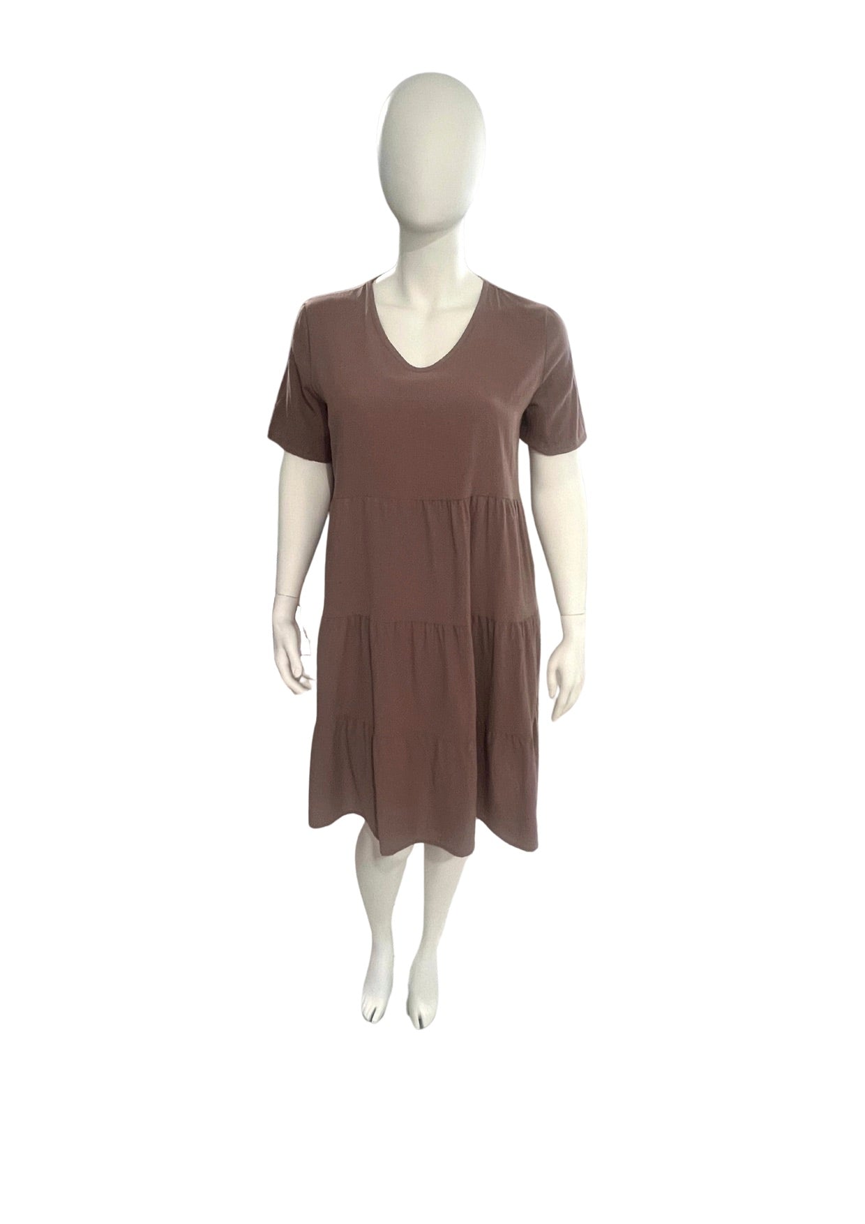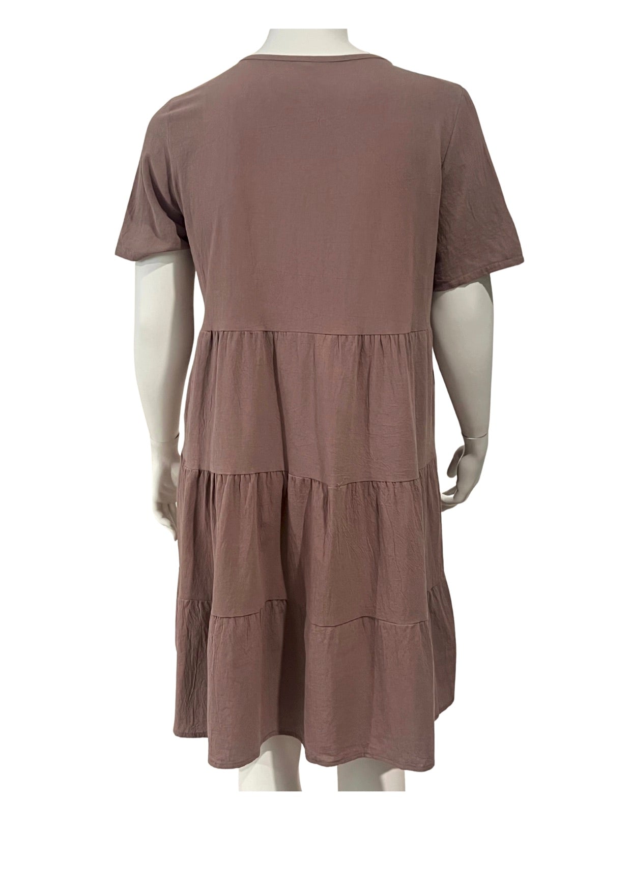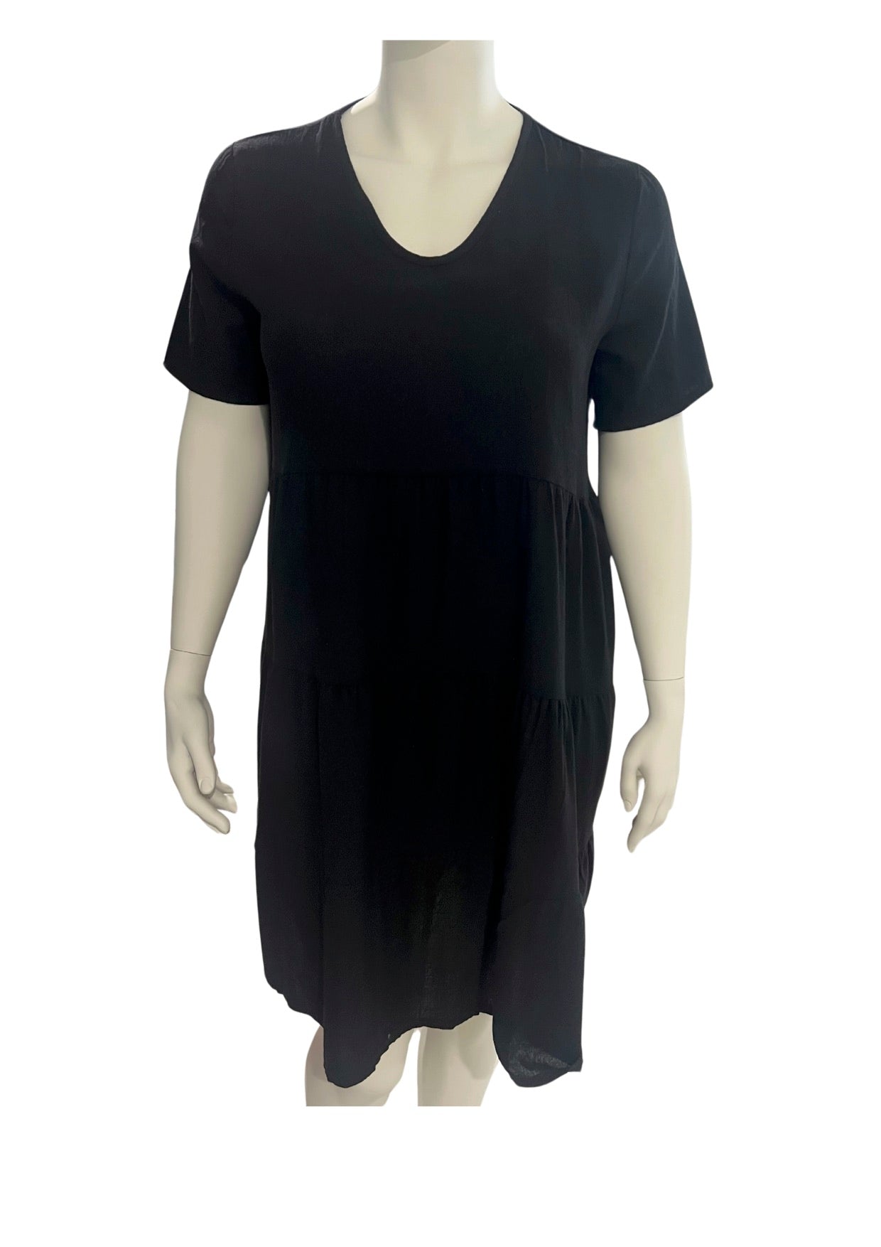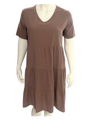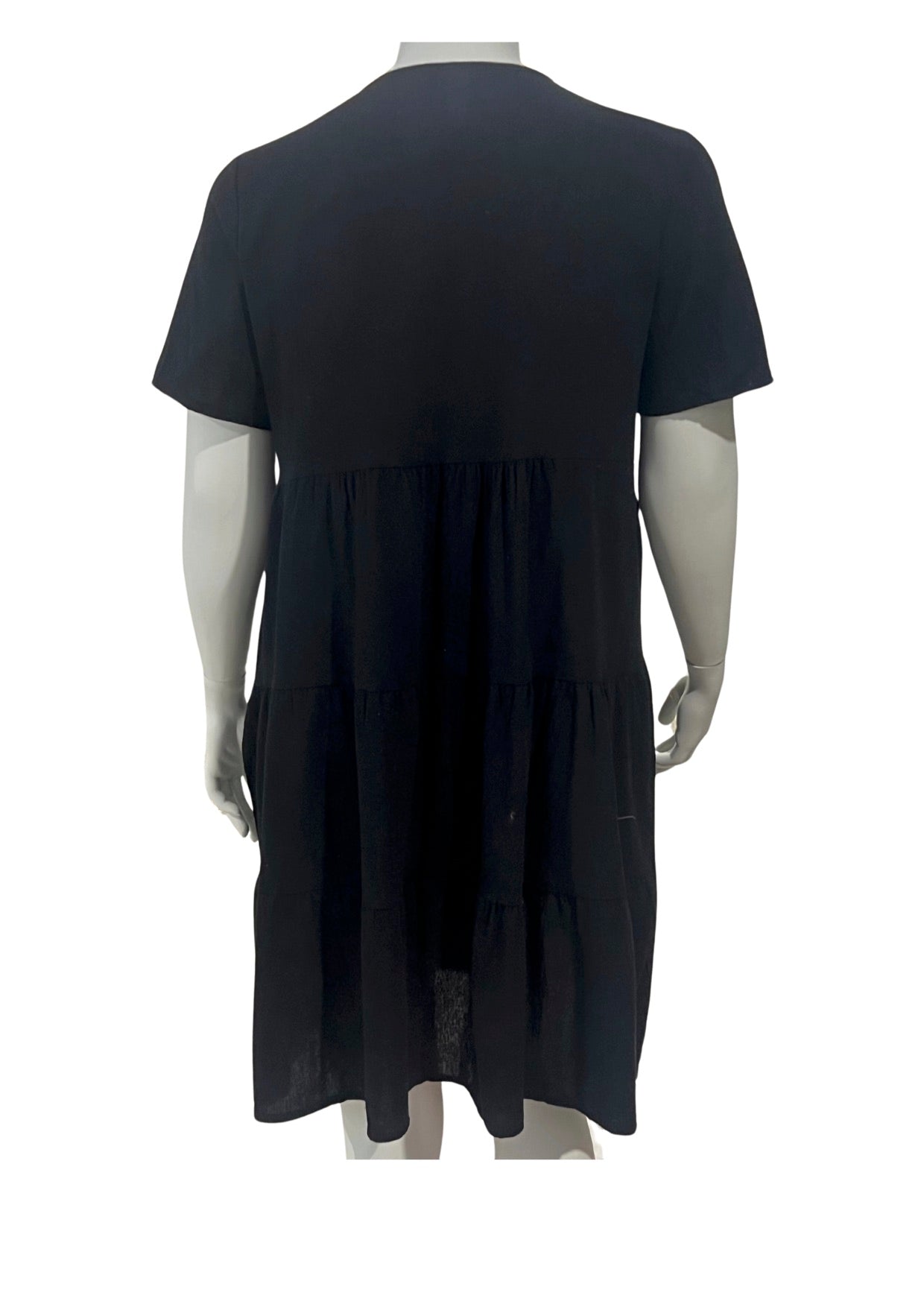 Introducing our Tiered Plus Size Womens Dress, the perfect addition to your wardrobe. Made with a relaxed fit and featuring tiered layers, this knee-length dress is both comfortable and stylish. The v-neck adds a touch of femininity, making this dress a must-have for any casual occasion.