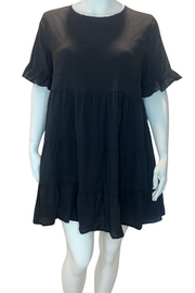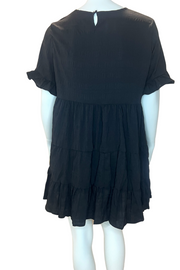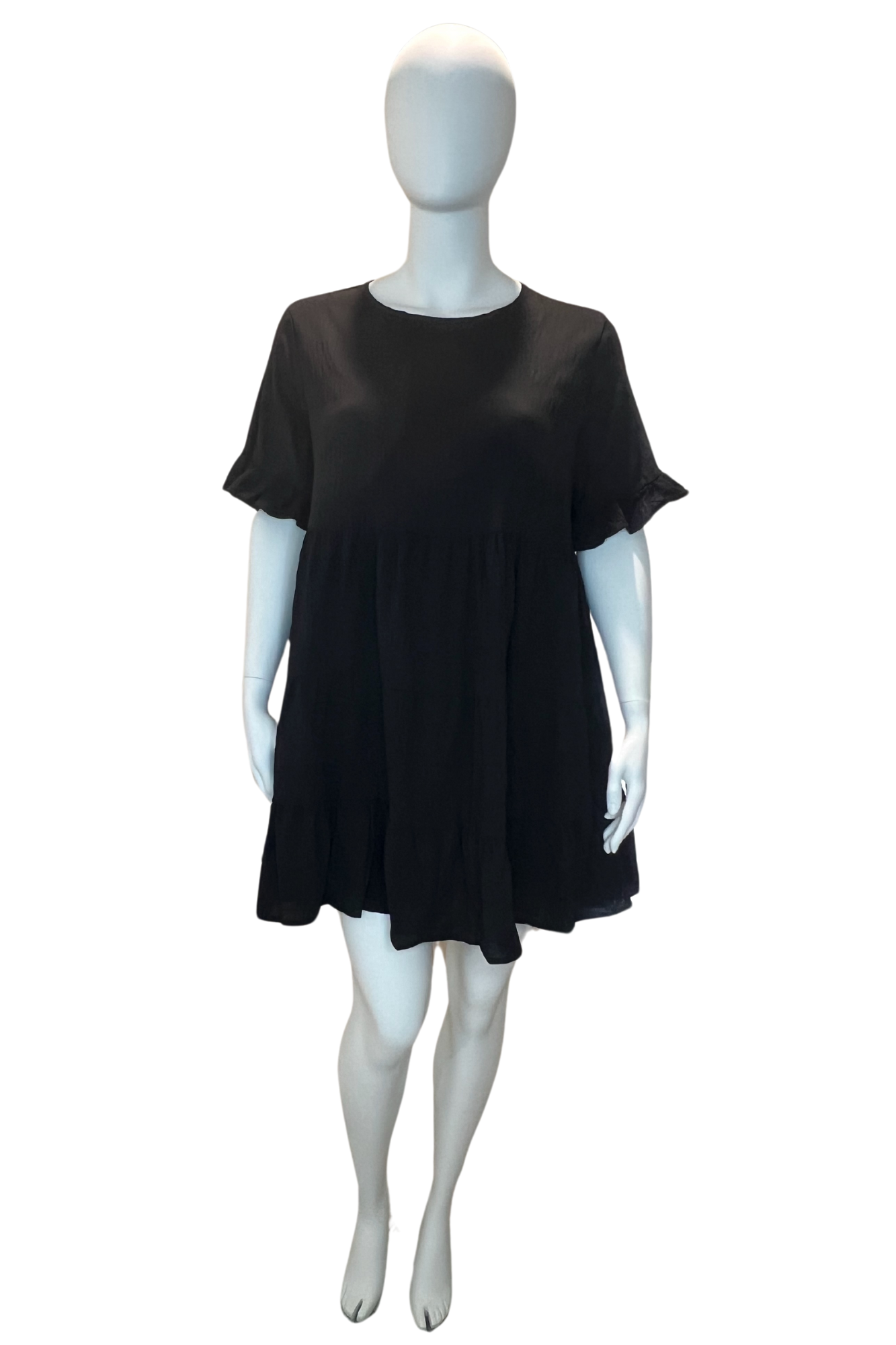 Black Short Sleeve Midi Length Tiered Ruffle Dress, Plus Size Dress, Boho Dress