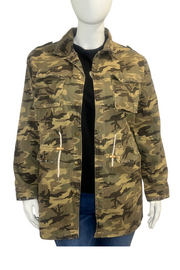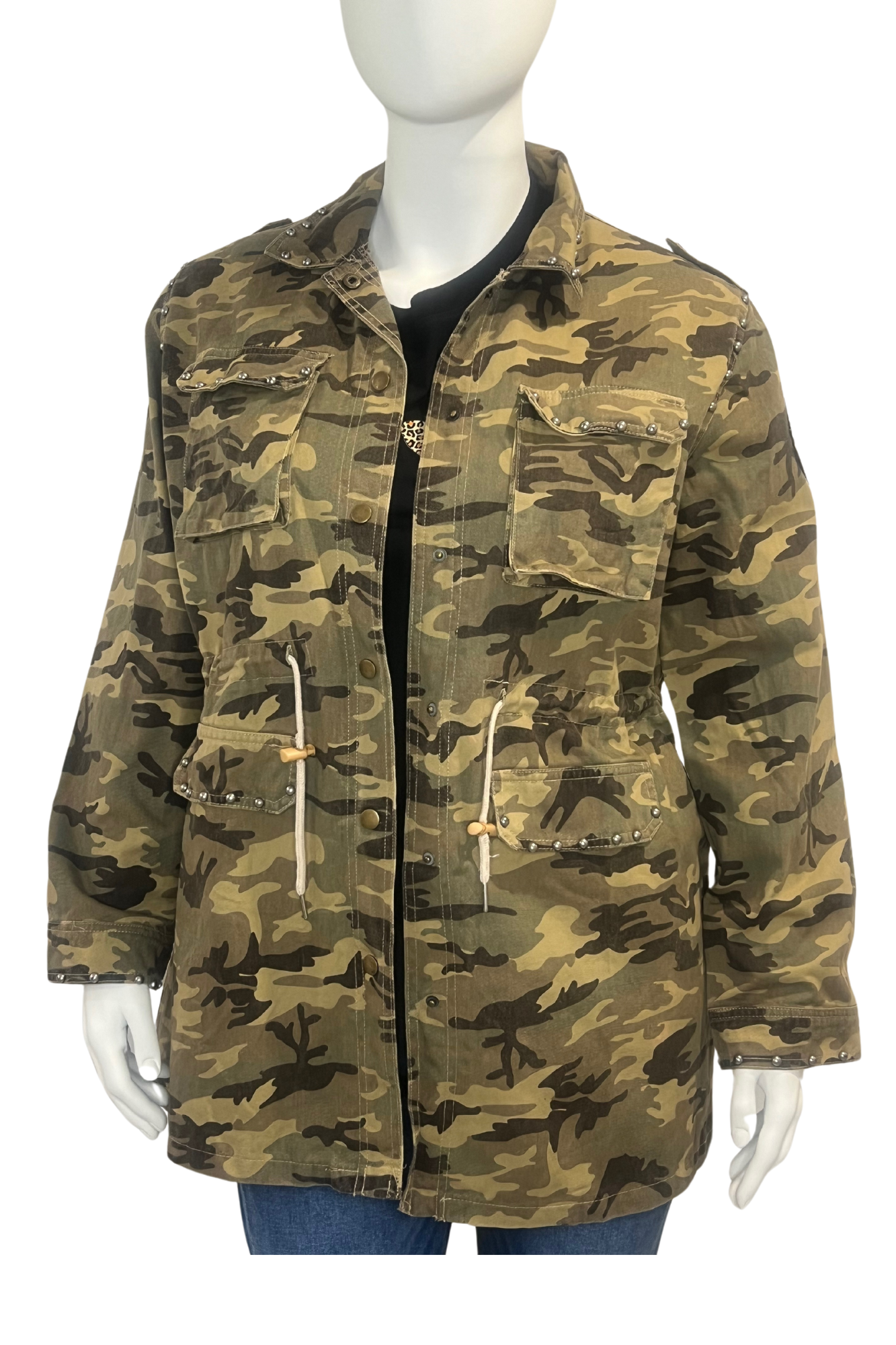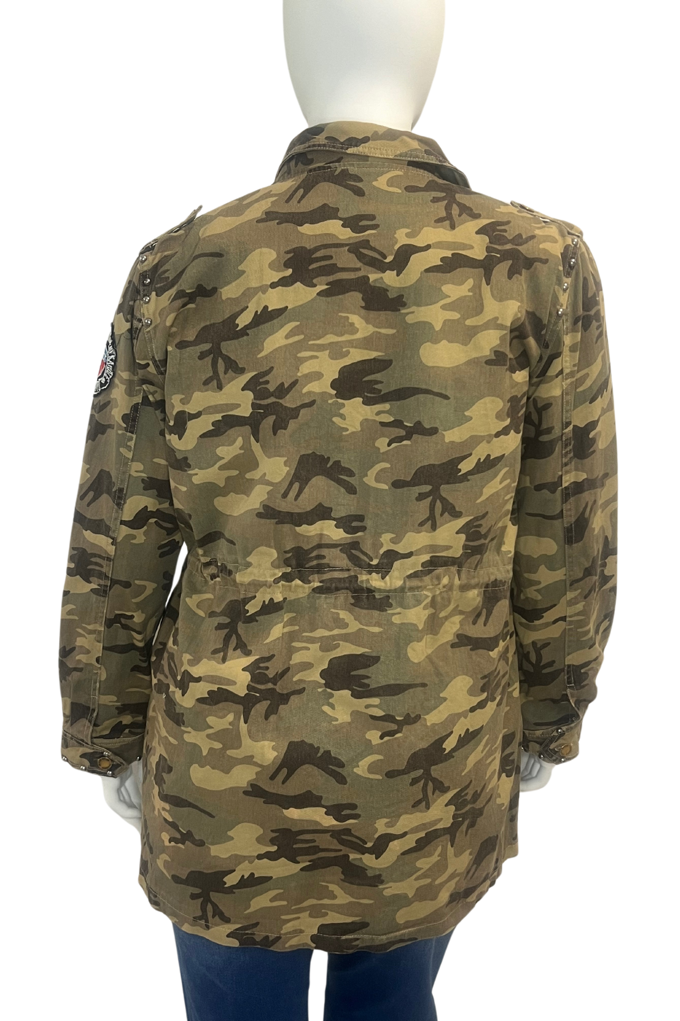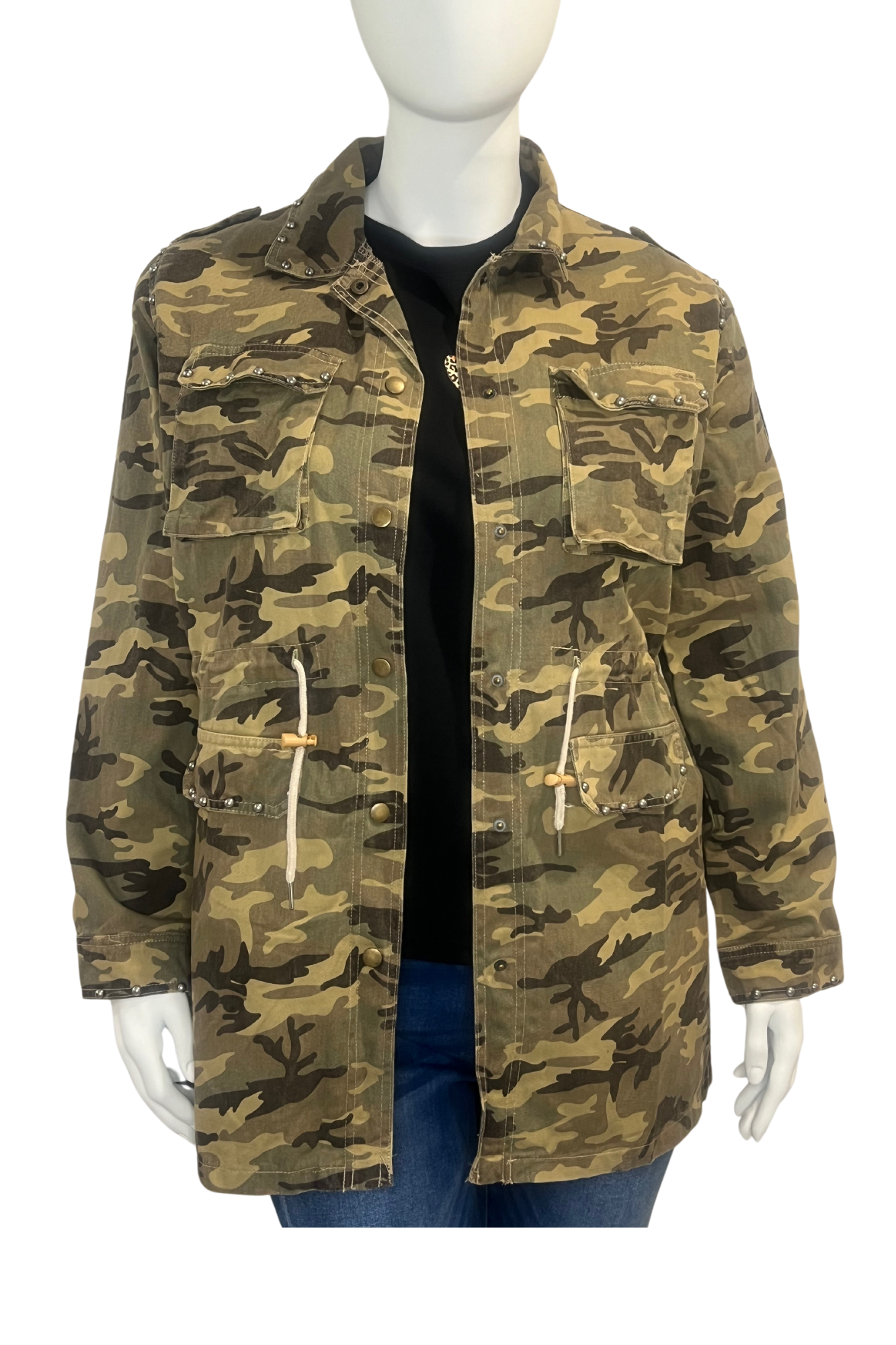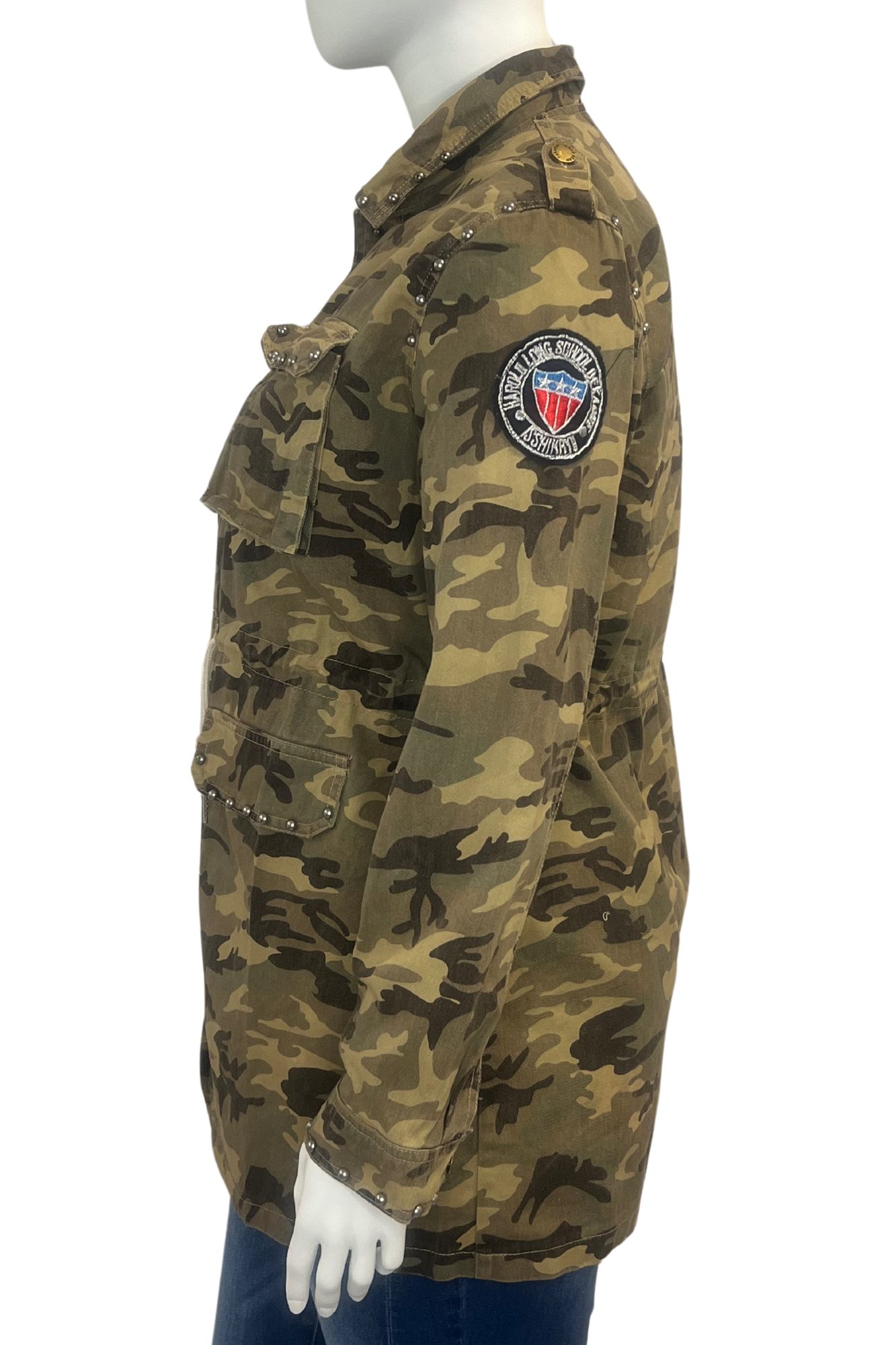 The Womens Plus Size Camouflage Jacket is a must-have for your wardrobe. Made with Denim woven material, it provides both style and comfort. The trendy patch on the sleeve adds an authentic touch. Perfect for any outdoor adventure or casual day out.