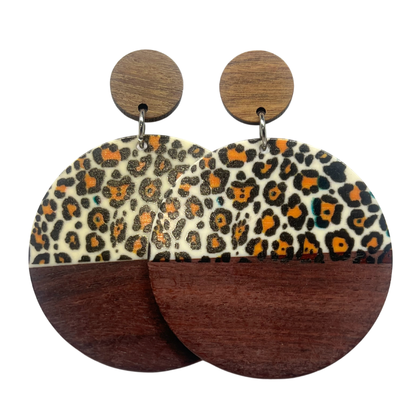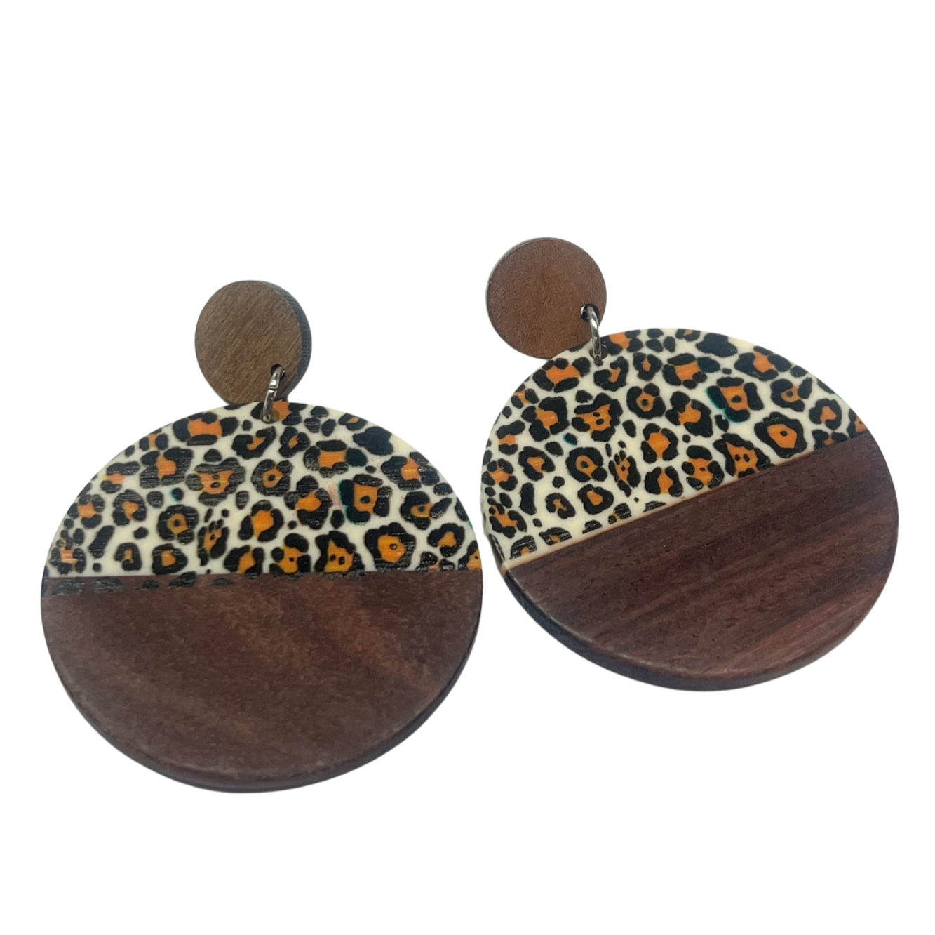 Leopard Print, Animal Print Wood & Resin Stud Dangle Earrings Fashion Earrings Statement Earrings
