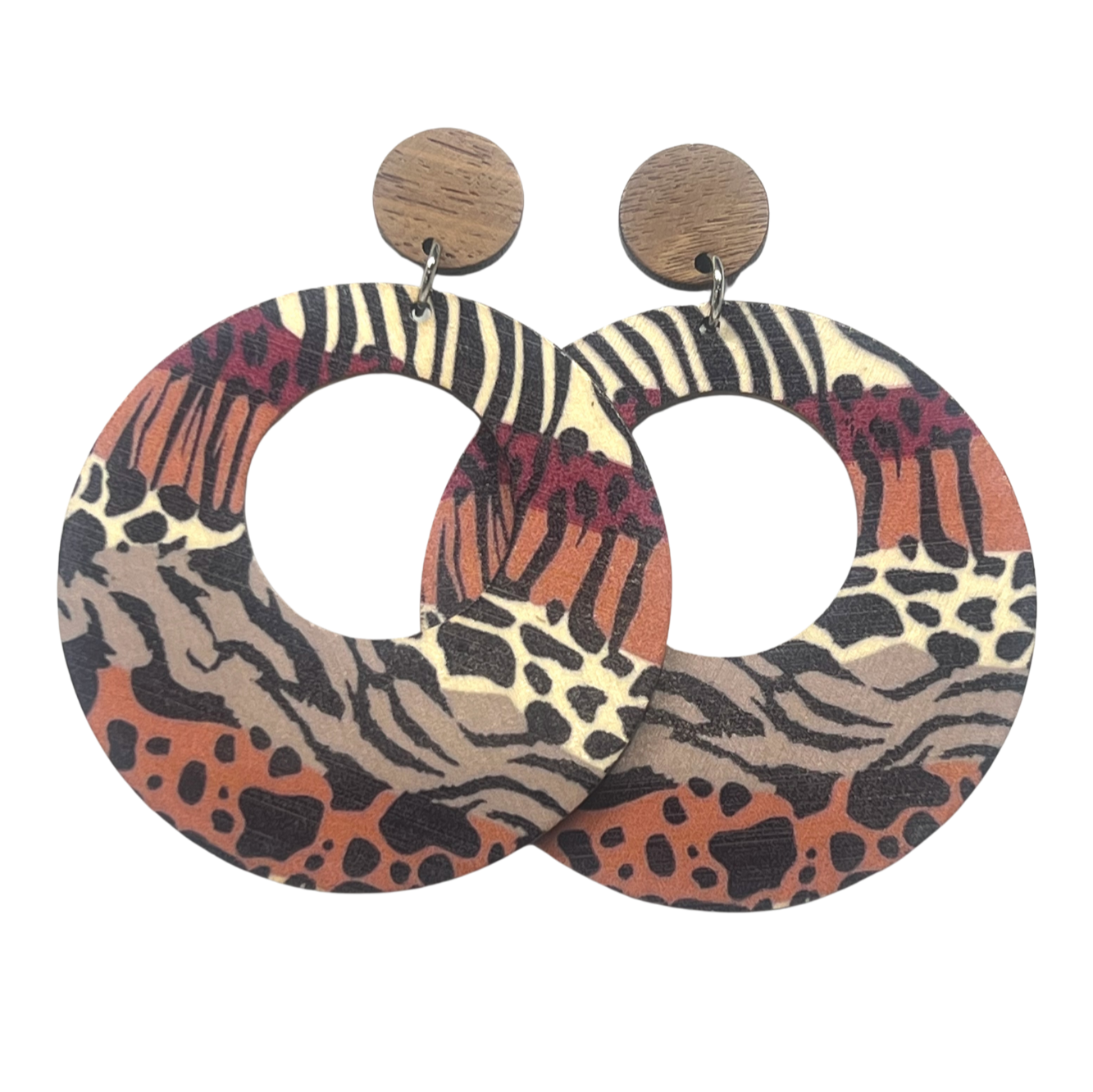 Animal Print Zebra Print Wood Stud Dangle Earrings Fashion Earrings Statement Earrings (Copy) (Copy)