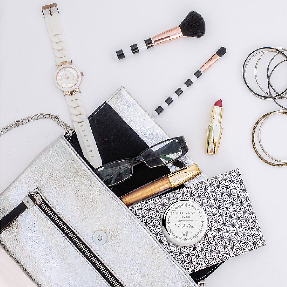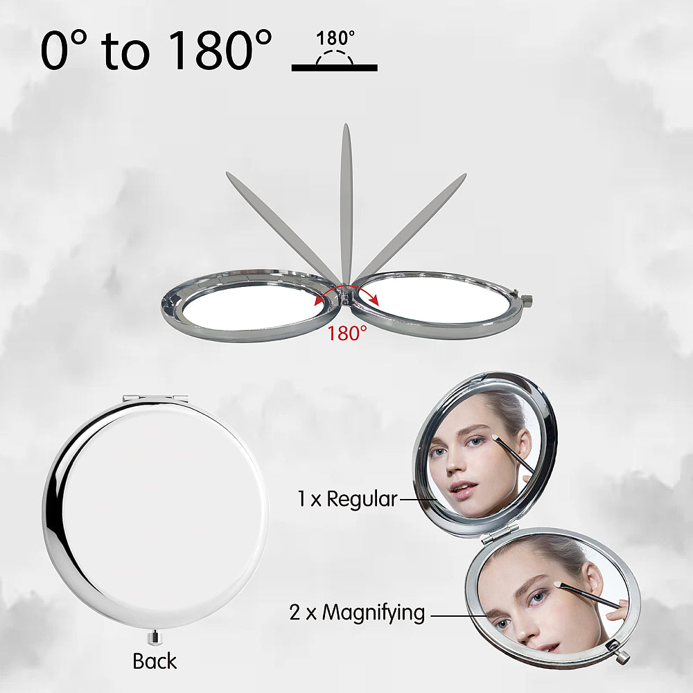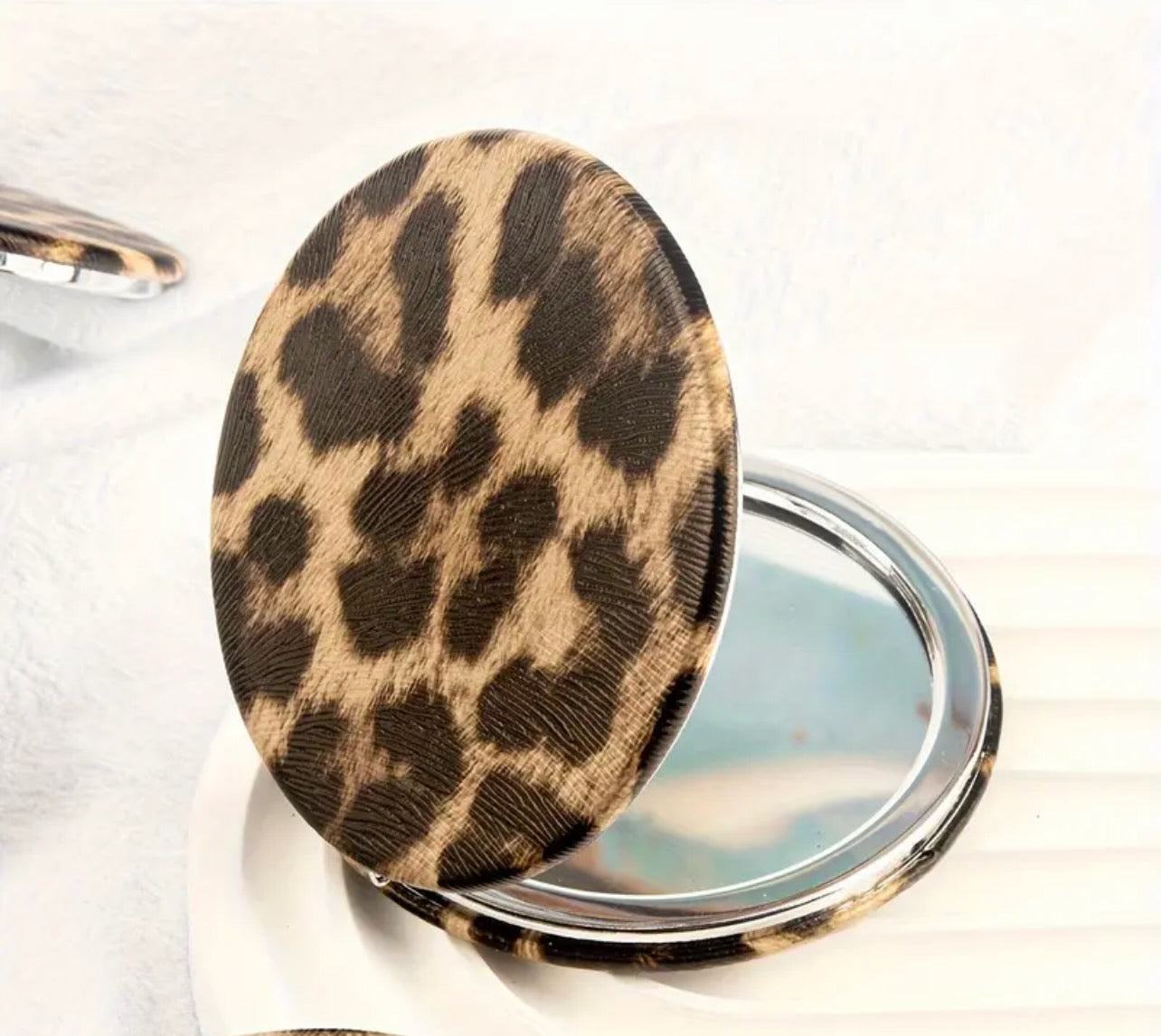 Conveniently touch up your makeup on the go with our Compact Makeup Mirror. Made with durable 304 stainless steel and customizable with a flat round design, this mirror is perfect for your handbag. Its compact size of 2.56 x 2.76 inches makes it easy to take with you wherever you go. Stay flawless no matter where you are! Silver or Leopard Print