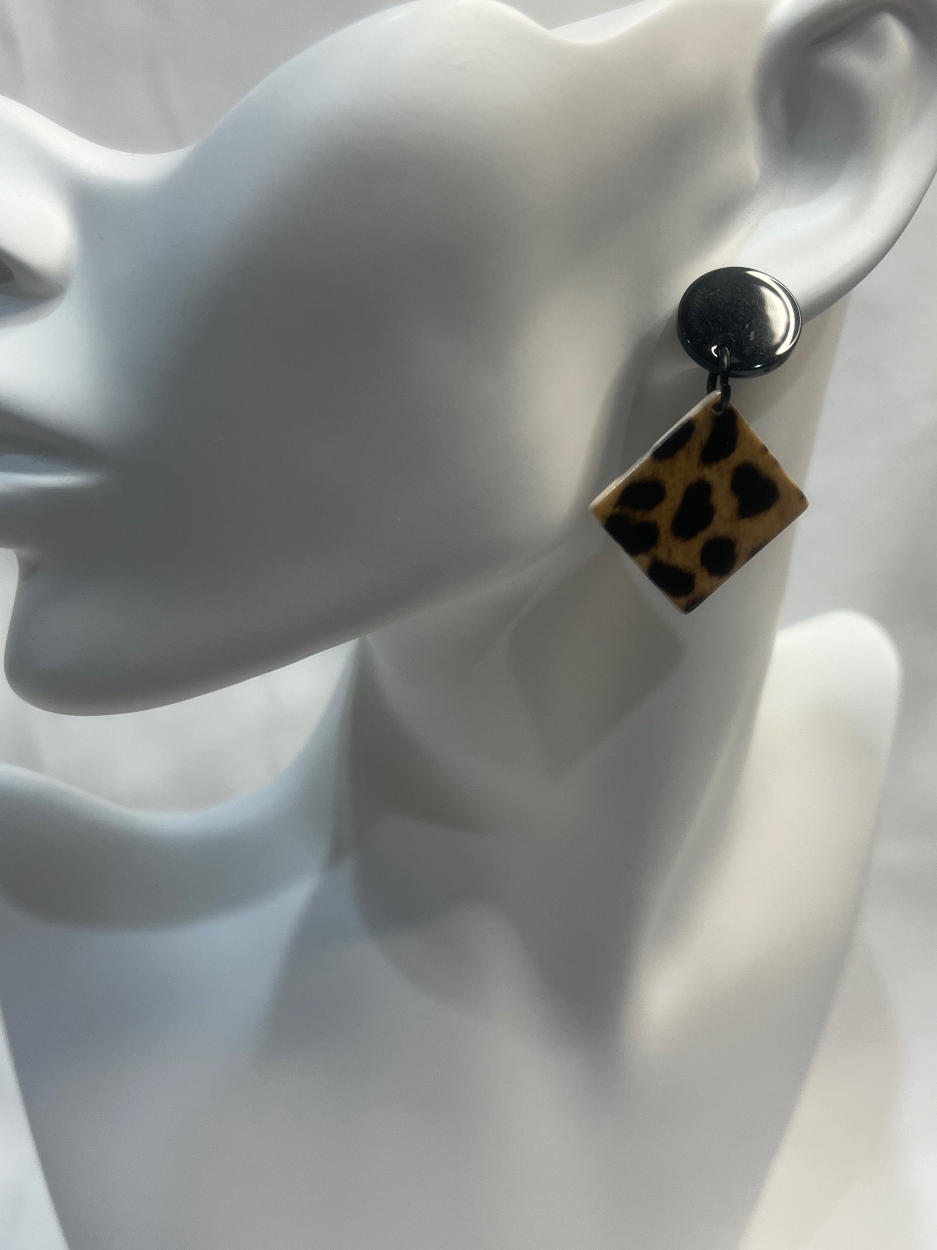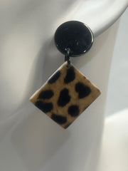 Leopard Print Acrylic Drop Earrings with Black Stud.