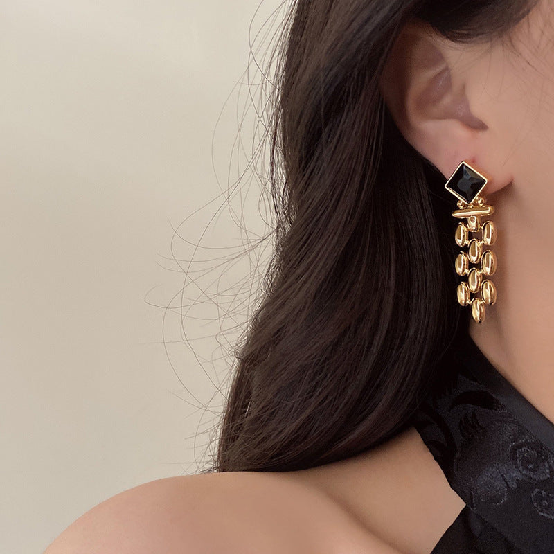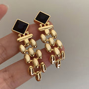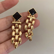 Elegant Square Gold & Black Plating Metal Drop Earrings Fashion Earrings Womens Accessories