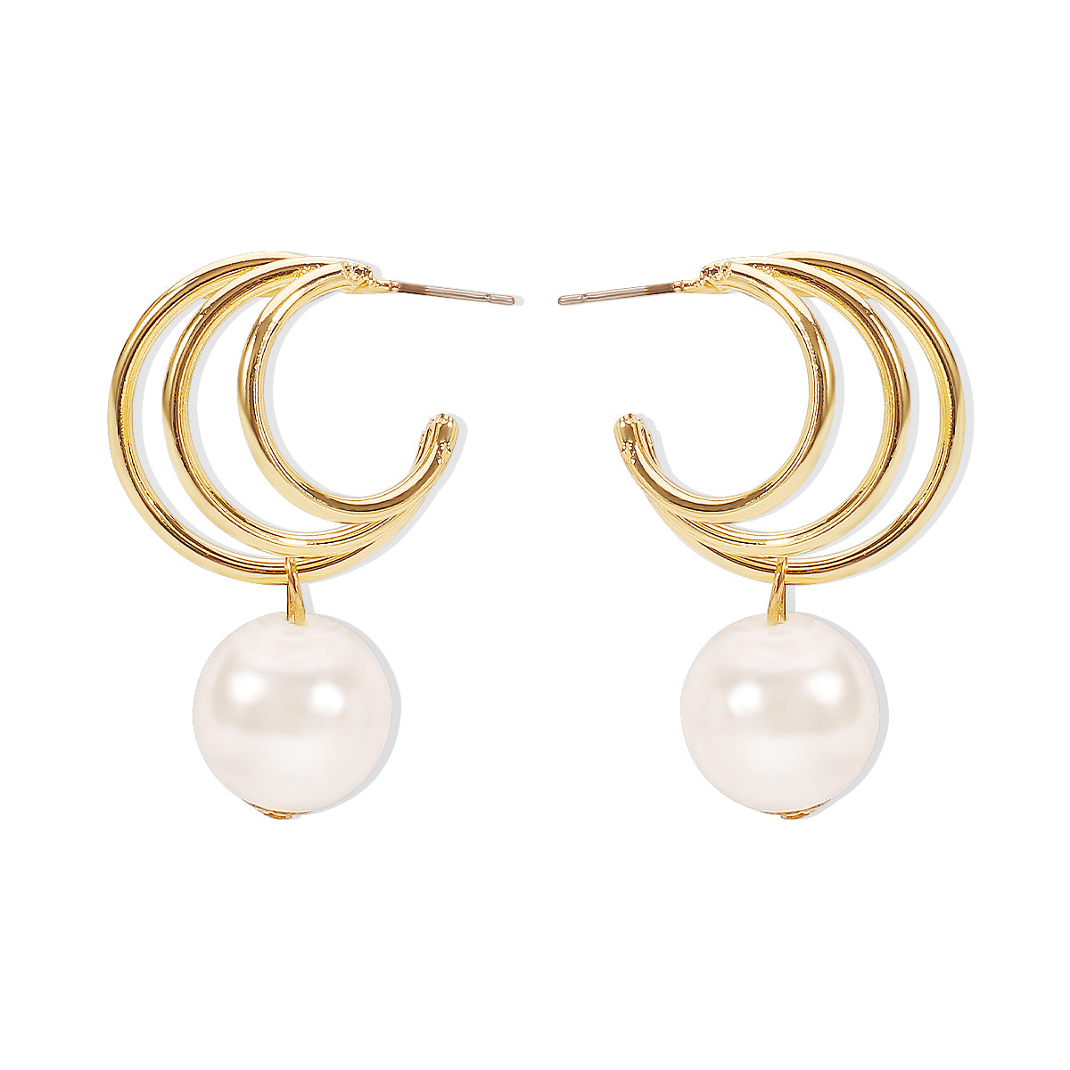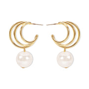 Gold & Pearl Geometric Plating Inlay Alloy Artificial Pearls Drop Earrings