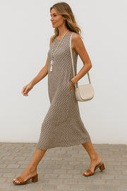 Women's Allover Print Sleeveless Midi Dress – Elegant Vacation Style Crew Neck Tank Dress, Loose Fit Summer Midi
