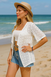 Solid Swiss Dot Open Front Blouse – Women’s Elegant Half Sleeve Bolero Cover Up, Summer Vacation Style