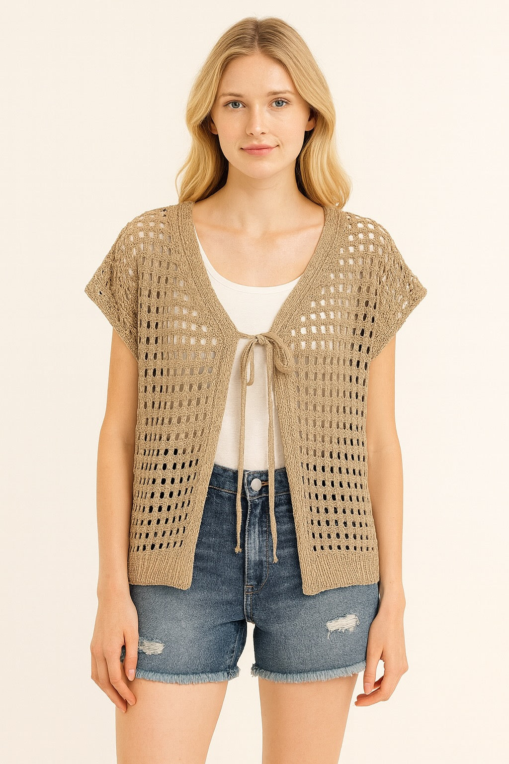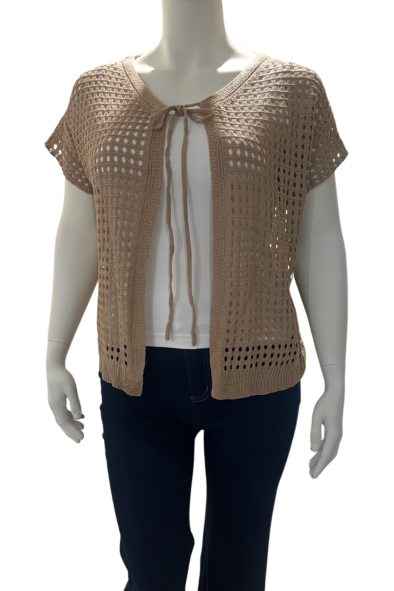 Women’s Small Size and Plus Size Cutout Knitted Cardigan Bolero – Elegant Hollow-Out Drawstring Knit Shrug | New Arrival Spring–Summer Fashion