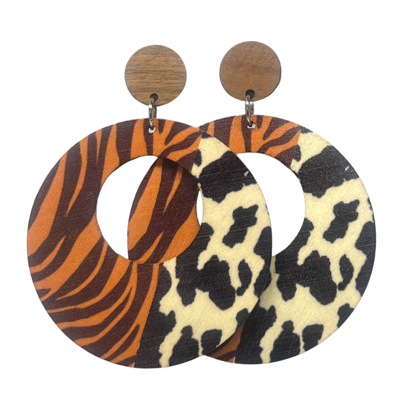 Animal Print Zebra Print Wood Stud Dangle Earrings Fashion Earrings Statement Earrings (Copy)