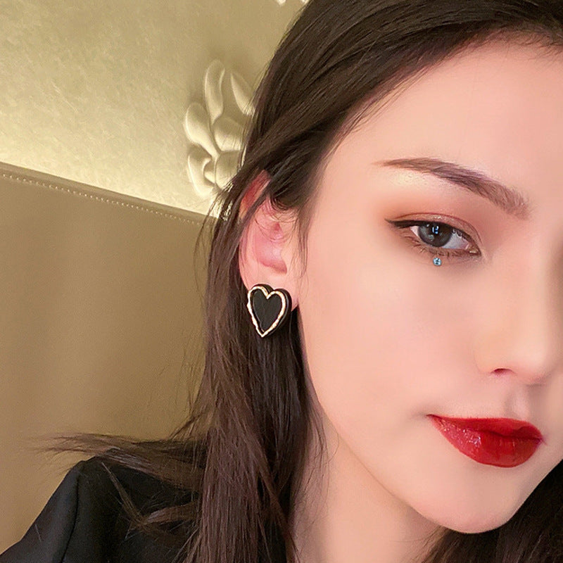 Vintage Style Black & Gold Heart Fashion Statement Earrings Gold Earrings Heart Earrings