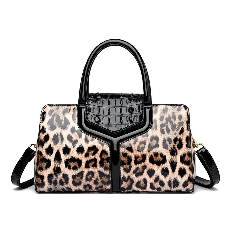 Womens Fashion Leopard Print & Crocodile Quality PU Leather Handbag Animal Print Handbag Evening Handbag