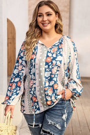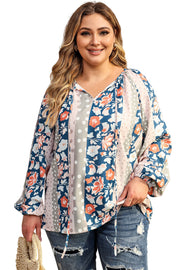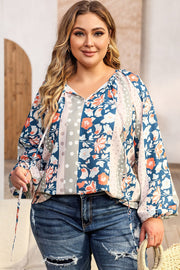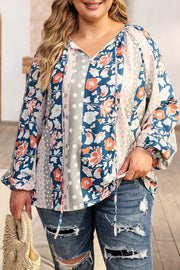 Multicolor Plus Size Mixed Print Split Neck Blouse