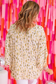 Yellow Printed Printed 3/4 Dolman Sleeve Plus Size Blouse