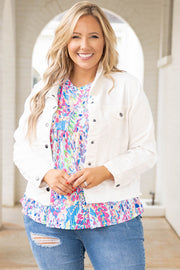 Vibrant botanical print for a fresh, summery lookShort frilled sleeves add a playful touch. Plus size babydoll style for most body curvesMade of high-quality fabric, soft and comfortable for wearing.