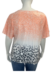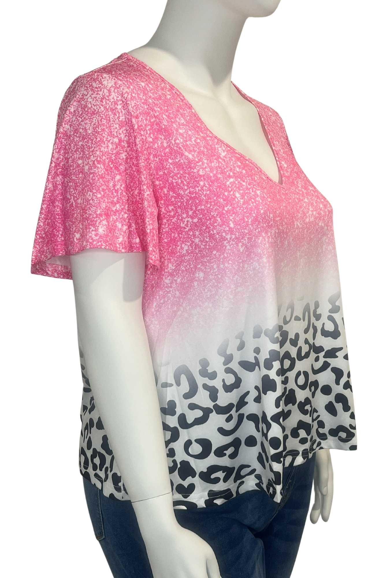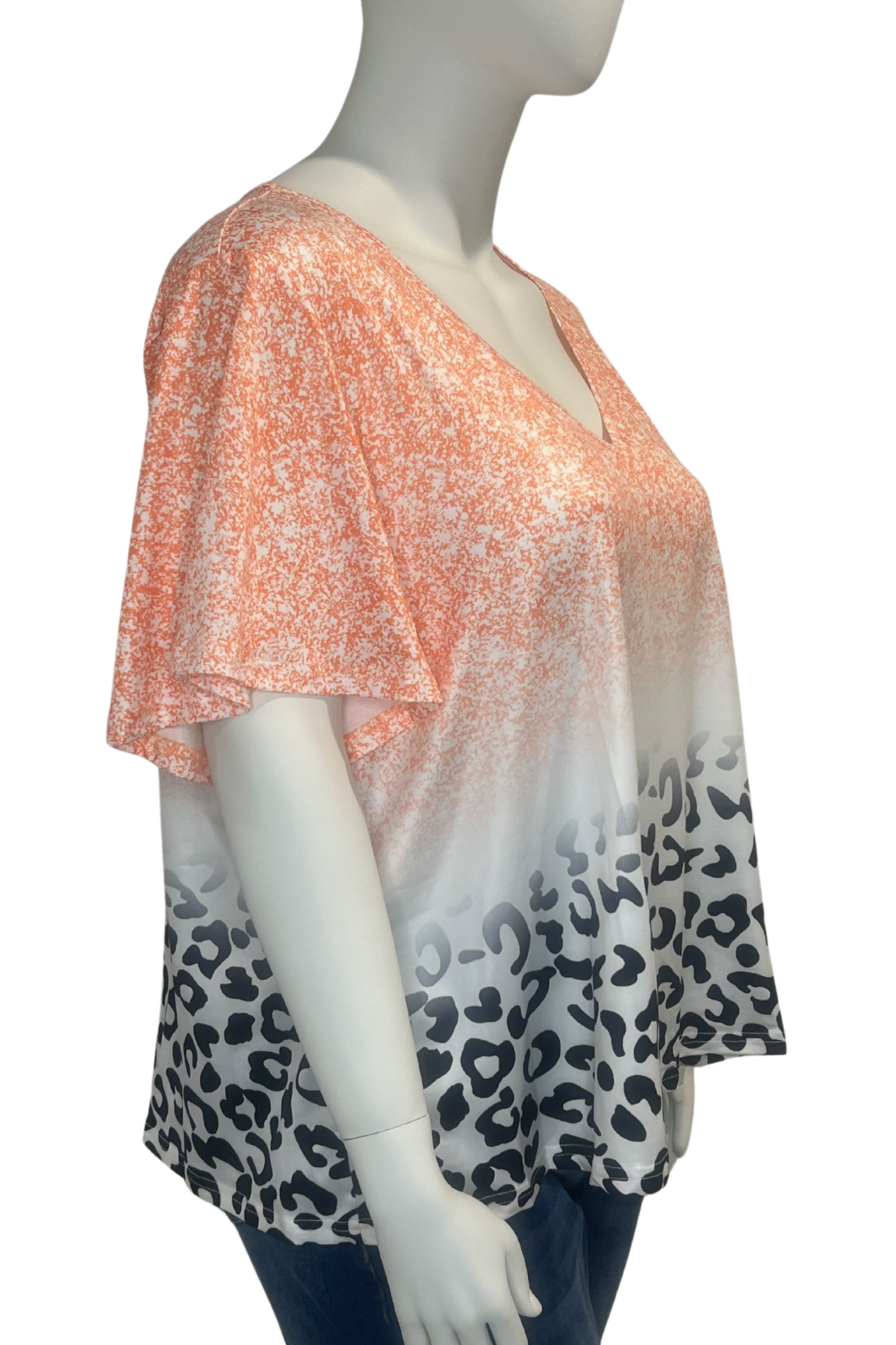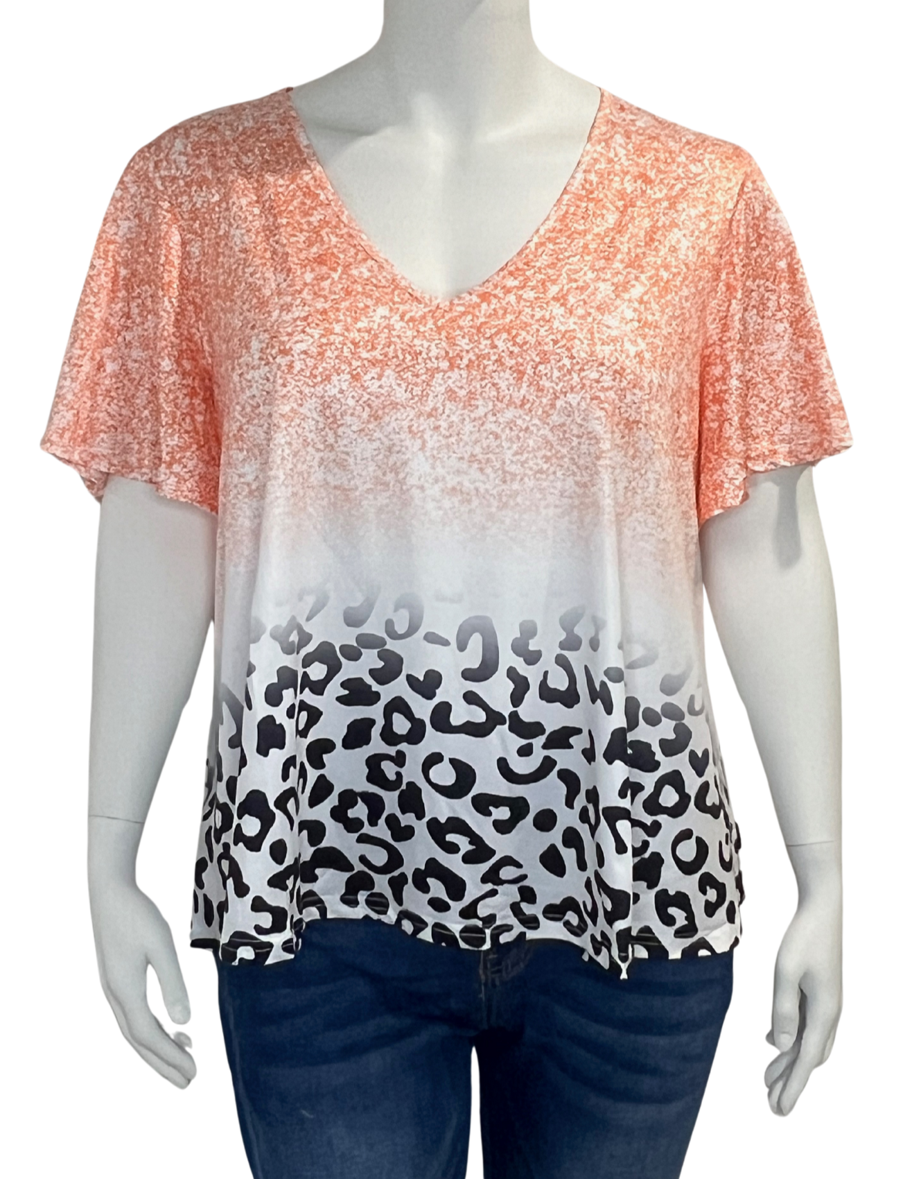 Effortlessly elevate your casual wardrobe with our Plus Size Casual Top, featuring a stunning Ombre, Leopard, Floral & Glitter Print design. This top offers a flattering V-neck and slight stretch for ultimate comfort and style. Perfect for any occasion, the short sleeves add a touch of feminine charm.