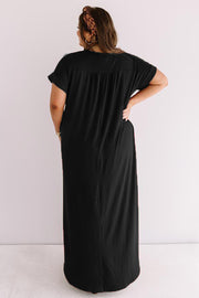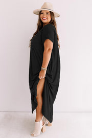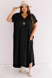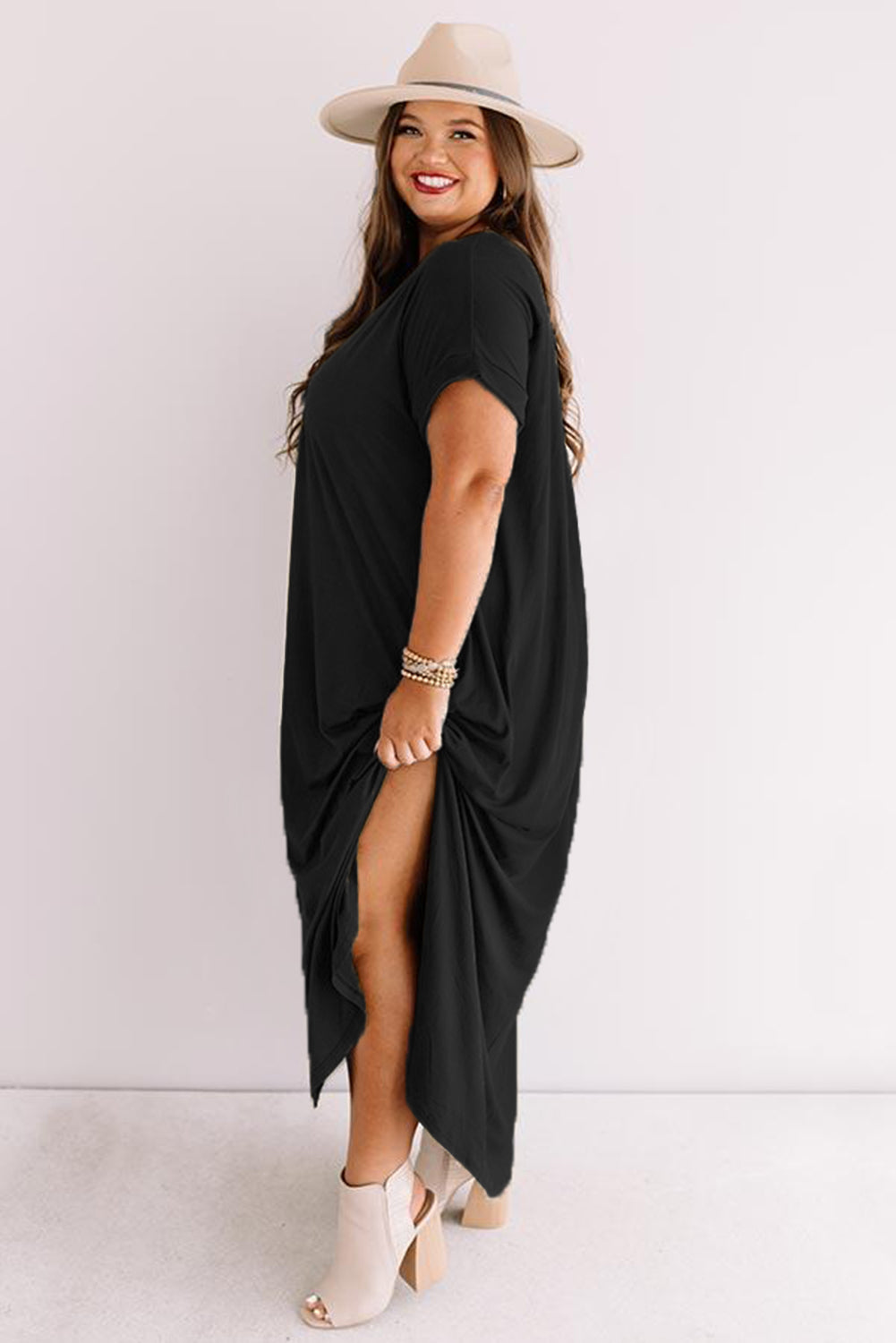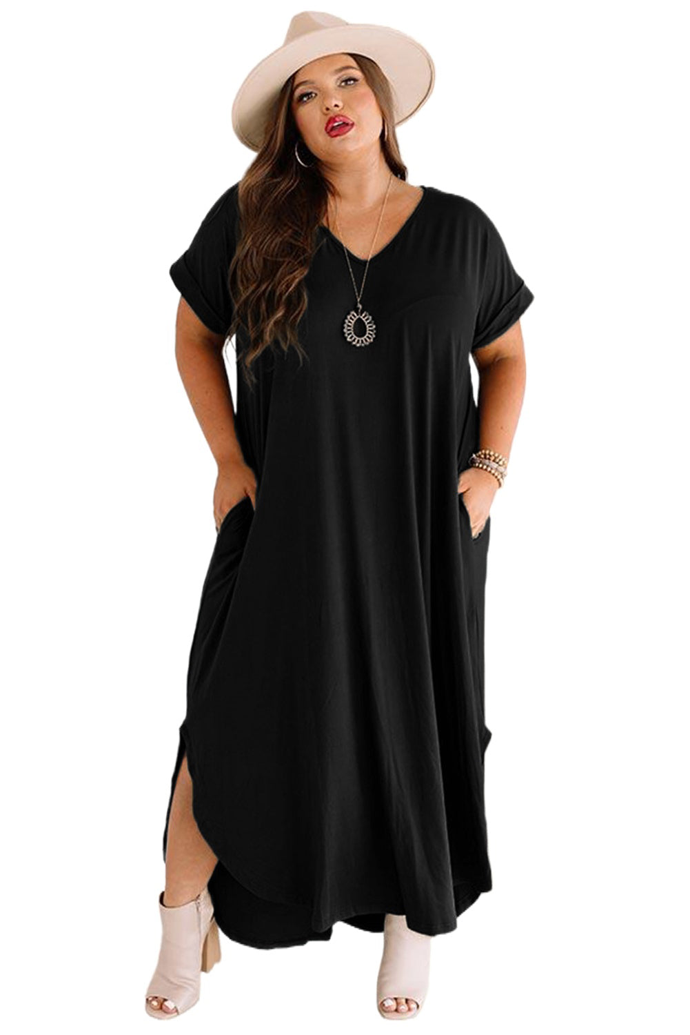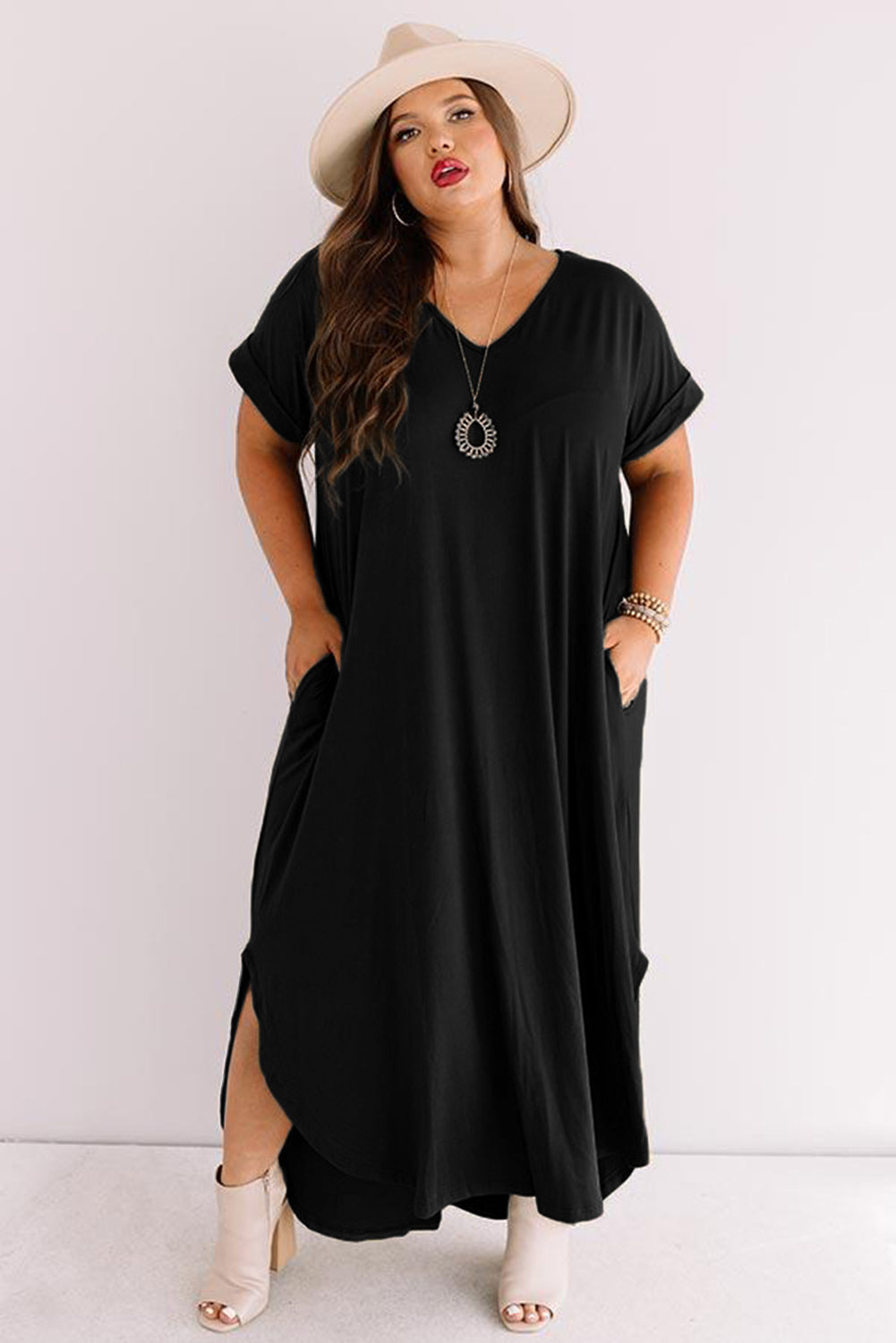 This plus t-shirt dress has a V-neckline for comfort of wear.
