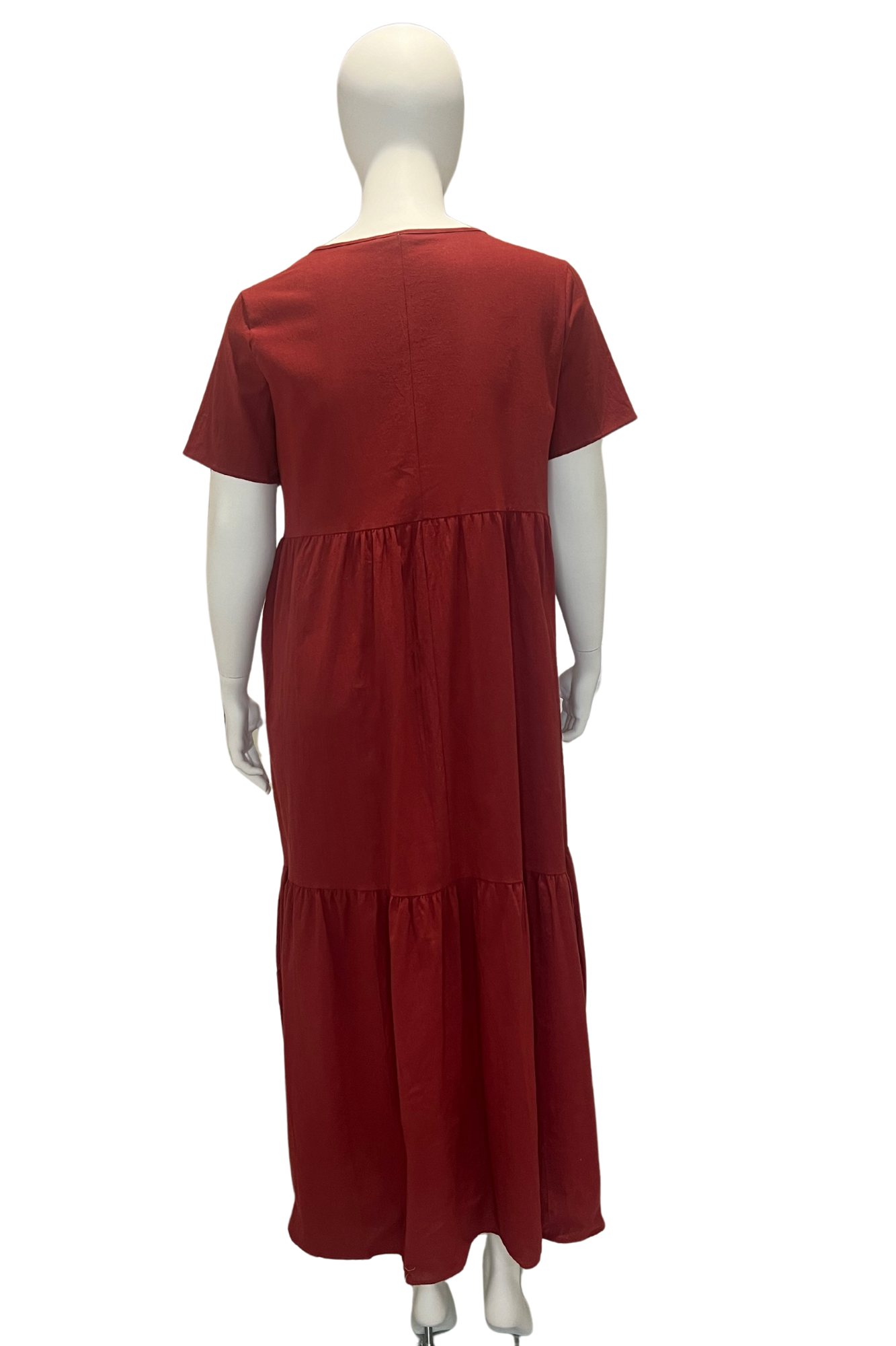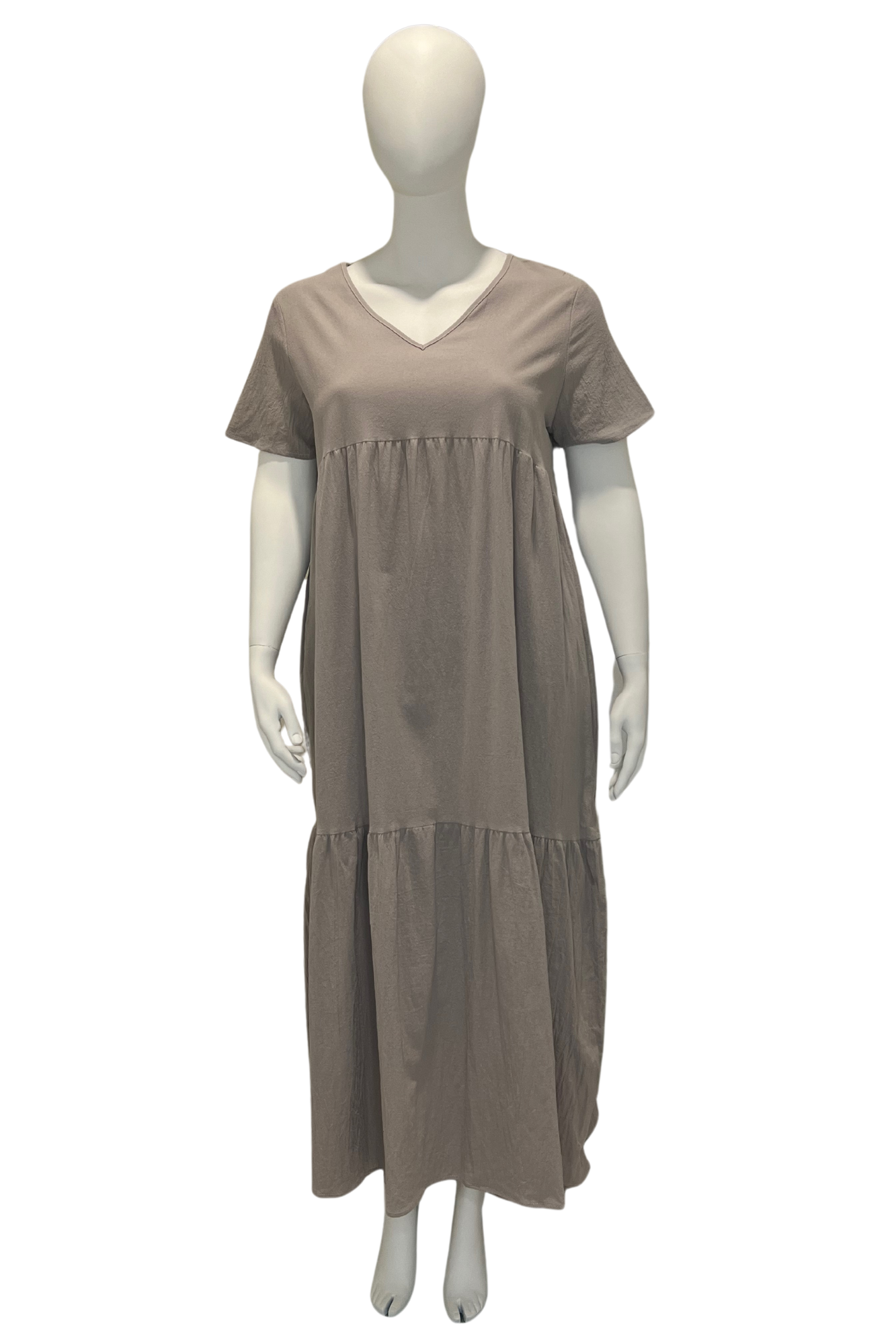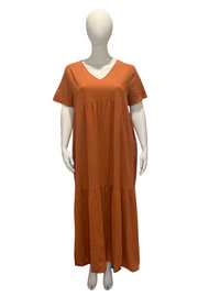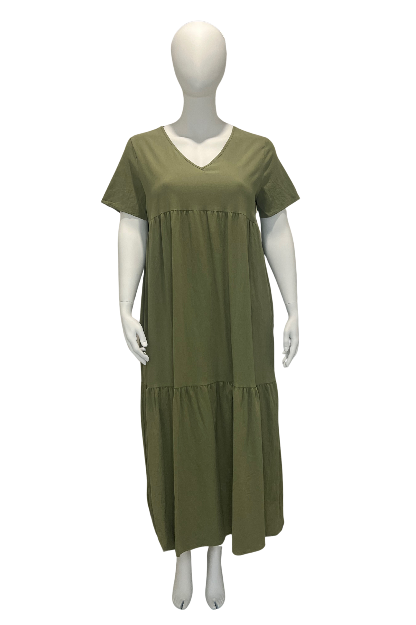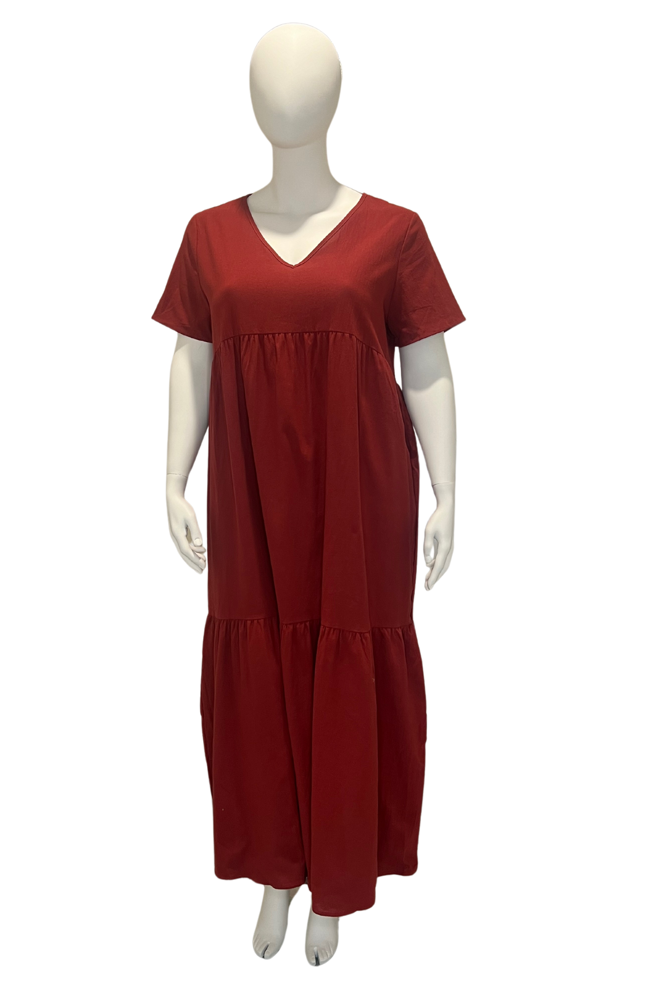 This beautiful, three-tiered maxi dress is perfect for plus-size women, featuring a flattering v-neck and relaxed fit. Made from cool and comfortable cotton linen, it's available in 7 different colours. Elevate your casual wardrobe with this stylish and comfortable dress.